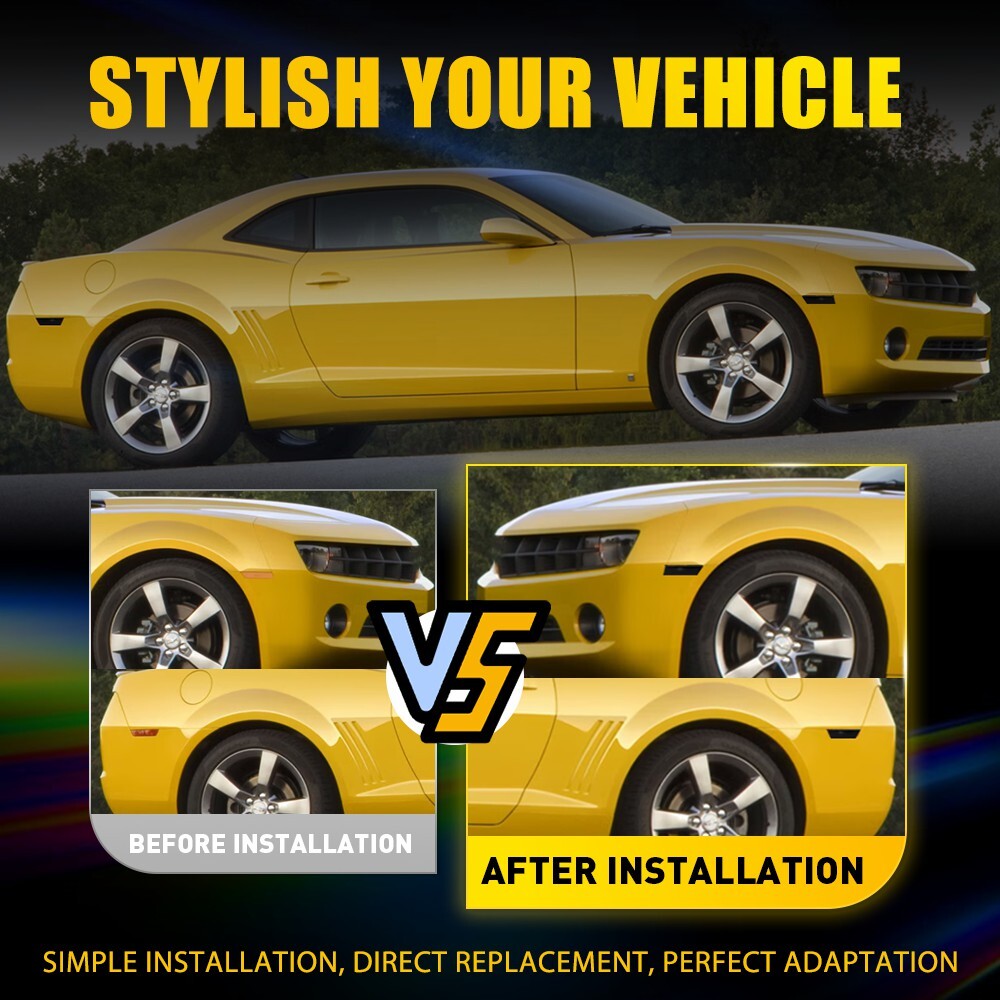These smoked side marker lights are a perfect upgrade for 2010-2015 Camaros! The ABS construction feels durable, and the sleek smoked lens adds a subtle aggressive look while maintaining visibility. Installation was easy—they fit like OEM parts with no gaps or alignment issues. Even after heavy rain, no moisture got inside, proving the waterproof seal works great. The smoked finish matches darker paint jobs beautifully without looking too aftermarket. A must-have for Camaro owners wanting a clean, factory-style mod.