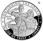 The 2010 Boy Scouts Centennial Silver Dollar was issued to celebrate the 100th anniversary of the founding of the Boy Scouts of America. A commemorative coin program was also subsequently authorized for the Girl Scouts of the United States of America, with the coins issued in 2013. The design of this coin was criticized by some collectors for its inclusion of a female. This design was specifically advocated by the organization in order to reflect the diversity of the nation and how the Boy Scouts had evolved over time to include all of the youth of America. Alternative designs had highlighted the continuity of the organization with images of a 1910 scout and a modern day scout. Ultimately, a design was chosen in accordance with the preference of the organization. The Boy Scouts of America Centennial Silver Dollar was issued in proof and uncirculated versions struck at the Philadelphia Mint. The maximum mintage was established at 350,000 coins across both options. Introductory pricing was in place from the start of sales on March 23, 2010 until April 21, 2010, after which time regular pricing went into effect. Mintage of 244,963 proof coins. A surcharge of $10 was included within the price of each coin, payable to the Boy Scouts of America Foundation. The funds collected were used by local councils for the extension of funding to hard to serve areas.