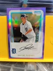 536/799...... This is a 2011 Bowman Chrome baseball trading card featuring Jacob Turner of the Detroit Tigers. It is part of the Prospects insert set, with a Purple Refractor parallel, serial numbered to 799 copies. This rookie card is manufactured by Topps and has the card number BCP185.