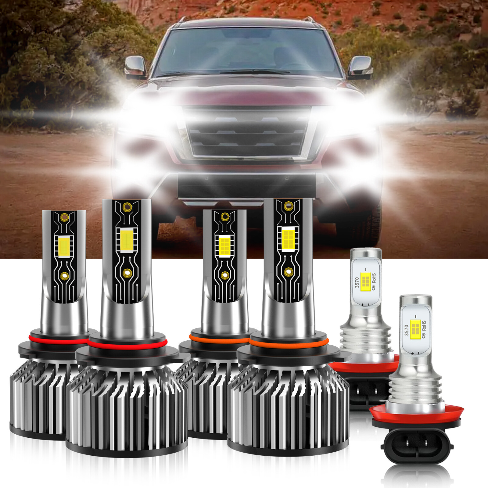 Product View Detail Specifications: --Plug Type: 9005 + 9006 + H11, High-Low Beam+Fog light --Power:75W/per bulb, 150W/Set --Lumens:13000LM/per bulb, 26000LM/ Set --Operating Voltage: DC 9-32V(fit 12V,24V vehicles) --Color Temperature: Pure White 6500K --IP Rate: IP68 --LED type: CSP LEDs --Beam Angle: 360° --Operating Temperature: -40 - +105°C --Lifespan: 50,000+ working hours --Number of Bulbs: 6 --Material: Aviation 6063 aluminum profile --Usage: headlight,foglight Advantage: * LED lights than traditional halogen energy, more power. * Xenon lamp brightness and proximity , but the LED lights light up without delay, to enhance road safety. Instant start no strong currents impact , effectively protecting the car comes with a battery , improving battery life of more than 30%. * Fast cooling , the appearance of the most advanced design , thermal structure ingenious and reasonable. * Fewer Components damaged, repair the probability is very low , compared with HID ballast repair lower than 80% . * LED car headlights simple structure, fewer parts than xenon lamps, significantly lower than the xenon lamp failure rates ! * Automotive LED headlamps color temperature balancing. The Xenon bulbs in the same color to clear , about 6000K-6500K. * Easy Installation: you could done within 20 minutes. Tips: Insert into the right slot-clockwise, rotate-led chips face 3 o’ clock and 9 o’ clock direction. Package Included: 2 x 9005(HB3) LED Headlights Bulbs 2 x 9006(HB4) LED Headlights Bulbs 2 x H11(H9/H8) Fog Light 1 x Manual Warm Tips: Because cars complex, if you find they are unsuitable after buying bulbs, please contact our customer service team first before you want to request the return or leaving any angry reviews.Pls believe, we are specialize on car light and will help you solve the problem.We will not cause you any losses. Note: If you are not sure about the bulb size, please send us your vehicles' make/model/year via ebay message to confirm with us before purchasing. Shipping Policy Payment Method Returns Policy Shipping Policy Payment Method Returns Policy Copyright © 2017 DataCaciques Store Categories Store Categories Other Product View Detail Specifications: --Plug Type: 9005 + 9006 + H11, High-Low Beam+Fog light --Power:75W/per bulb, 150W/Set --Lumens:13000LM/per bulb, 26000LM/ Set --Operating Voltage: DC 9-32V(fit 12V,24V vehicles) --Color Temperature: Pure White 6500K --IP Rate: IP68 --LED type: CSP LEDs --Beam Angle: 360° --Operating Temperature: -40 - +105°C --Lifespan: 50,000+ working hours --Number of Bulbs: 6 --Material: Aviation 6063 aluminum profile --Usage: headlight,foglight Advantage: * LED lights than traditional halogen energy, more power. * Xenon lamp brightness and proximity , but the LED lights light up without delay, to enhance road safety. Instant start no strong currents impact , effectively protecting the car comes with a battery , improving battery life of more than 30%. * Fast cooling , the appearance of the most advanced design , thermal structure ingenious and reasonable. * Fewer Components damaged, repair the probability is very low , compared with HID ballast repair lower than 80% . * LED car headlights simple structure, fewer parts than xenon lamps, significantly lower than the xenon lamp failure rates ! * Automotive LED headlamps color temperature balancing. The Xenon bulbs in the same color to clear , about 6000K-6500K. * Easy Installation: you could done within 20 minutes. Tips: Insert into the right slot-clockwise, rotate-led chips face 3 o’ clock and 9 o’ clock direction. Package Included: 2 x 9005(HB3) LED Headlights Bulbs 2 x 9006(HB4) LED Headlights Bulbs 2 x H11(H9/H8) Fog Light 1 x Manual Warm Tips: Because cars complex, if you find they are unsuitable after buying bulbs, please contact our customer service team first before you want to request the return or leaving any angry reviews.Pls believe, we are specialize on car light and will help you solve the problem.We will not cause you any losses. Note: If you are not sure about the bulb size, please send us your vehicles' make/model/year via ebay message to confirm with us before purchasing. Shipping Policy Payment Method Returns Policy Shipping Policy 1)All items will be shipped to your ebay address .Please update your latest address when you check out,and please make sure to provide us with correct,precise and detailed shipping address. 2)All items will be shipped in 1-2 business days (excluding Sat,Sun & Holiday) after payment received and cleared. For the long-time holiday, we'll post the info on our store and reply you automatically via emails. 3)If you don't receive items over 30 business days,please make sure to contact us before leaving any neutral or negative feedbacks.We'll try our best to help you solve the problem. Payment Method We accept PayPal Only! Import duties, value added taxes and any other charges are not included, Buyers are responsible for import duties, custom fees and taxes, if any. Please check with your country's custom office to determine the additional costs impose on the item prior to buying. We are absolutely NOT responsible for any import tax or Customs duty. Returns Policy Return is accepted within 30 days after the buyer receiving the item. Returned item has to be in its original condition,Return shipping is to be paid by the Buyer.