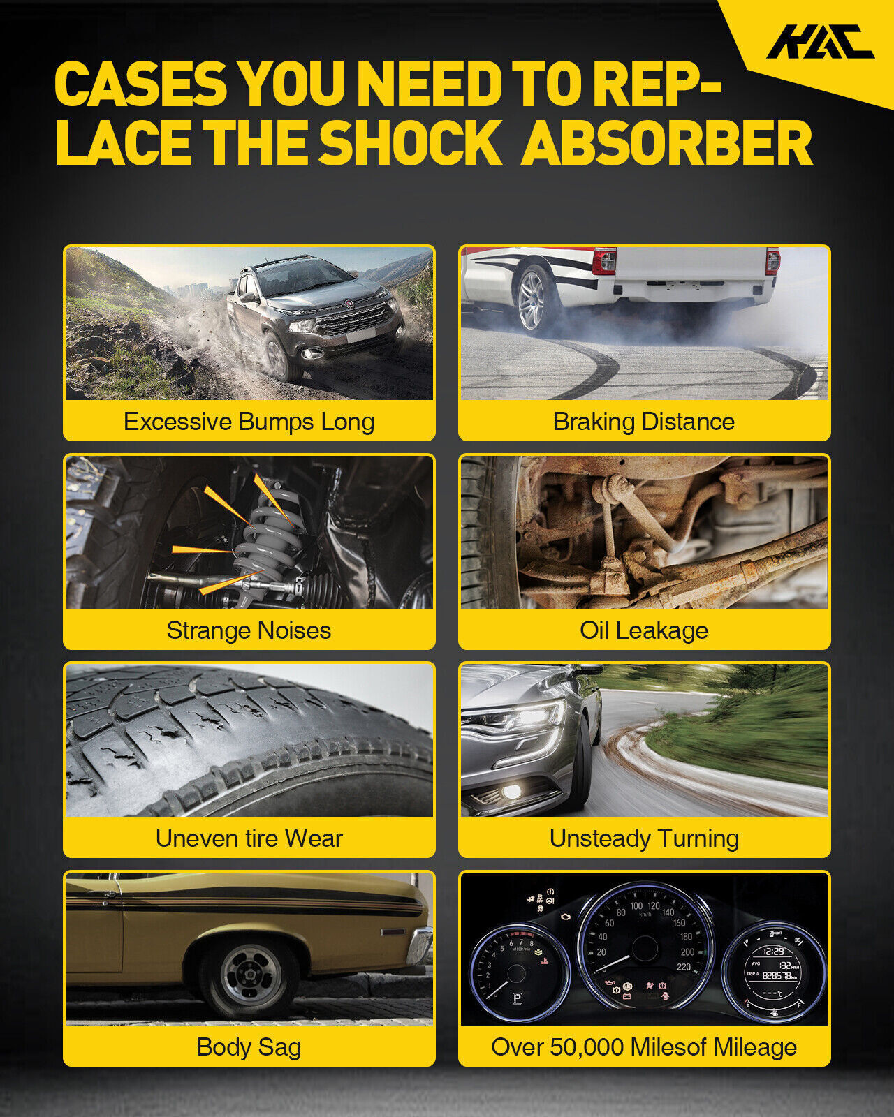 You may like Rear Shock Absorber Pair For 1999-2007 Chevrolet Silverado GMC Sierra 1500 2WD USD41.99 2PCS Front Struts Shocks For 2011-2014 Chrysler 200 2008-2014 Dodge Avenger USD120.99 2pcs Front Complete Struts Coil Springs for Nissan Altima 2007-2013 182392 USD130.99 2x Front Complete Strut Assembly w/ Spring For Ford Taurus 3.5L FWD 2008 2009 USD135.99 Rear Shock Struts Absorbers For 2006-2012 Ford Fusion 2007-2012 Lincoln Mkz Pair USD38.99 DURABLE & BRAND NEW US WAREHOUSE FAST & FREE SHIPPING LIFETIME WARRANTY Fitment: For 2011 - 2016 For buick LaCrosse FWD Specifications: Placement on Vehicle: Front Left / Right Interchange Part Number: 172528, 172529 When should the car shock absorber assembly be replaced? Bounce test: Press down the car at the front or back corner of the car and quickly release it. If the car bounces over, the shock absorber is damaged and should be replaced. Detected kilometers: 20,000 kilometers regularly check the shock absorber, 80,000 kilometers recommend to replace the shock absorber, 100,000 kilometers must replace the shock absorber Tire friction: A damaged shock absorber will cause abnormal grooves on the tire surface and uneven wear. The shock absorber should be replaced. Shock absorber leakage: If the shock absorber leaks oil, the shock absorber should be replaced in time. How to Install : Step 1: Before You Lift the Vehicle, Loosen Lug Nuts One Full Turn. Step 2: Jack up Vehicle and Use Jack Stands for Safety & Remove the Tire from the Rotor. Step 3: (Wheel Alignment Is Necessary After Strut Replacement.) Marking the Position of All the Bolts Will Help Keep the Alignment Close to Original and save Time Aligning. Use a Colored Pencil to Mark the Old Strut on the Bolt. Step 4: Use Penetrating Oil (Such As Wd40) to Coat Any Rusted Fasteners, Let Soak for Approximately 1 Hour. Step 5: (Optional) While Waiting for Oil to Soak, Take This Time to Inspect All Other Components That May Need Replacement (Brake Pads, Rotors, Brake Hoses, Ball Joints, Cv Boots, Tie Rod Ends, Bushings, Sway Bars, Etc). Step 6: Remove Any Brake Line or Wire Attachments from the Strut Body. Do Not Disconnect Brake Lines (If Possible)! Opening Brake Lines Will Require Bleeding of the Brake System. Use Extreme Caution When Removing Brake Lines from Your Struts, As Any Damage to Your Brake Line Can Result in Expensive and Time Consuming Repairs. Step 7: Remove Sway bar Attached to the Strut Assembly or Control Arm. Step 8: Remove the Tie Rod (Only If It Attached to the Body of the Strut, If Not Leave It Attached to the Steering Knuckle). Step 9: Remove the Strut to Knuckle Bolts at the Bottom of the Strut. on some Vehicles, the Brake Caliper and Rotor May Need to Be Removed to Gain Access. Step 10: Remove the Upper Mounting Plate Bolts Located in the Engine or Trunk Compartment. Do Not Remove the Center Retaining Nut! It Is Not Safe to Unload the Spring from the Assembly in This Position. Step 11: Carefully Remove the Old Strut Assembly from the Vehicle. Be Very Cautious Not to Let the Strut "Drop" down on Your Brake Line, Rotor or Drum. Step 12: Install the New Complete Strut Assembly in the Reverse Order As Above (Steps 11-6). Using an Anti-seize Compound on All Fasteners Is Suggested. Step 13: Carefully Double Check Your Work and Make Sure Everything Is Tightened to Manufacturers Torque Specifications. Step 14: Replace the Tire the Rotor and Tighten to Manufacturers Torque Specifications. Step 15: Slowly Lower the Vehicle down After Removing the Jack Stands. Pay Very Close Attention to Any Odd Sounds When the Vehicle Is Lowered Onto the New Complete Strut Assemblies. Step 16: It Is Very Important That You Immediately "Road Test" Your Vehicle Right Away to Ensure That Installation Was Done Properly. Listen and Feel for Common Signs of Incorrect Installation While Driving Slowly over Speed Bumps, Rough Road or Potholes. Payment Shipping Return Policy Contact Us Important Points 1) we accepts all major credit cards via PayPal: MasterCard, Visa, American Express and Discover. 2) We will only ship to the confirmed PayPal shipping address given with the payment. Please make sure your PayPal and eBay address is correct. If not, please correct it before payment. Thank you. 3) If you want to ship to another address, please change your PayPal shipping address before you make payment. 4) To avoid initiating an unpaid item claim, please pay within 7 days. 5) Custom duties, taxes, or charges are not included in the cost you pay to us. We only ship this item to United States ! 1. We ship to your eBay address. Each package will be shipped by UPS or Fedex with tracking number. 2. Ship within 1 business day once payment completed. Orders placed on weekend will be shipped within 3 days. 4. Seriously promise: Refund or resend will be offered if item still not arrive in 7-10 business days. Just send us an email ,we will give you a satisfied solution as soon as possible. If you send us an e-mail, it will be answered within 48 hours during our working hours. Please feel free to contact us if you have any questions: Dear my friend,we appreciate your support.And our goal is service you well and give you a pleasant shopping time in our store. ✅Dear customer, when you want to return or exchange goods (Please contact us first, instead of directly initiating a dispute) 1: Contact the seller first 2: Send pictures: outer packaging&scanned labels&item itself&with complete accessories, etc necessary condition Rule A: The original packaging of the item is in an unused state. Rule B: The outer packaging must not have any damage. 3: Obtain return label 4: Delivered Projects - Payment Repayment ✅A 15% restocking and shelving fee will be charged for returns or exchanges that are not caused by the seller and are in good condition. Exchange will not charge restocking fees or shipping fees due to transportation errors ✅Priority In case of the following reasons, the freight will be borne by the buyer 1: Unexpected 
