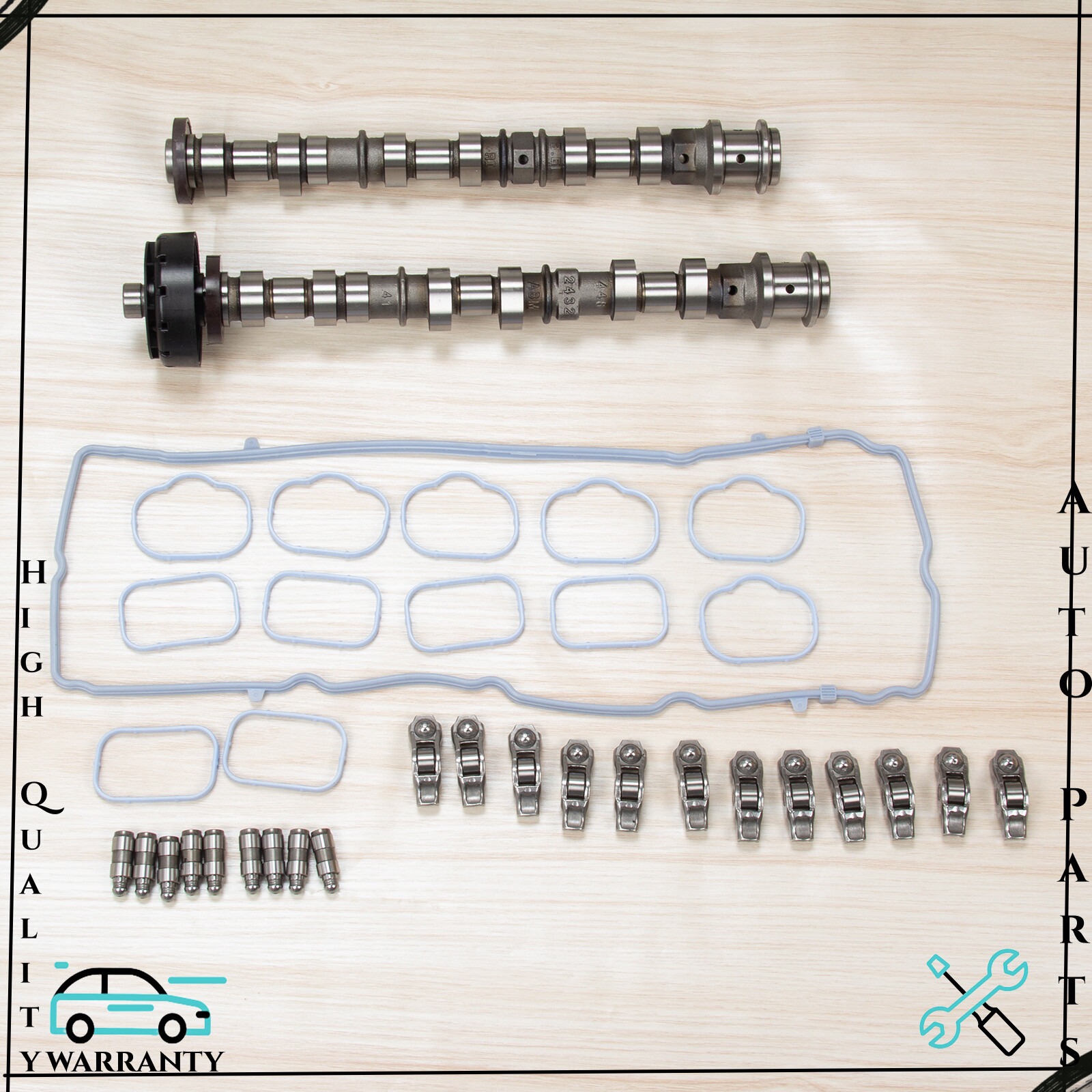Features: 【HIGH QUALITY&EASY INSTALLATION】 Made of high quality durable material that meets OE standard.100% new Camshaft,not refurbished or re-manufactured parts.keeps all the stock low end with way more top end power. Manufactured to precise OE requirements for perfect fit. 【LONGER SERVICE LIFE】 High quality durability material and excellent crafts, as well as the applied series of tests in RD center before they were listed, provide a reliable operation and longer service life of this item. 【NOTE】 Please check picture, OE part number and FITMENT information to verify this is the correct one you need before purchasing.Don't forget assembly lube on the cam lobes! OEM Part Number: 05184377AF,5184377AG 3.6L LEFT SIDE EXHAUST 05184378AF,5184378AG 3.6L RIGHT SIDE EXHAUST 05184379AF,5184379AG 3.6L LEFT SIDE INTAKE 05184380AF,5184380AG 3.6L RIGHT SIDE INTAKE 5184296AH ROCKER ARMS 5184332AA VALVE LIFTERS 5184596AE 5184562AC 5184331AC left & right valve cover gasket kit Fits compatible the Following: For Engine with 3.6L V6 Pentastar Chrysler 200 3.6L V6 2011-2016 Chrysler 300 3.6L V6 2011-2016 Chrysler Town & Country 3.6L V6 2011-2016 Dodge Grand Caravan 3.6L V6 2011-2016 Dodge Journey 3.6L V6 2011-2016 Dodge Charger 3.6L V6 2011-2016 Dodge Challenger 3.6L V6 2011-2016 Dodge Durango 3.6L V6 2011-2015 Dodge Avenger 3.6L V6 2011-2014 Jeep Cherokee 3.6L V6 2014-2016 Jeep Wrangler 3.6L V6 2012-2016 Jeep Grand Cherokee 3.6L V6 2011-2015 Ram 1500 3.6L V6 2013-2016 Ram ProMaster 1500 3.6L V6 2014-2016 Ram ProMaster 2500 3.6L V6 2014-2016 Ram ProMaster 3500 3.6L V6 2014-2016 Item Includes 2x Engine Camshaft 1x Valve Cover Gasket 12x Rockers 12x Lifters 6x Intake Manifold Gaskets and Seals 6x Automotive Intake Manifold Gaskets If you have any problem towards the order you received,please feel free to contct us,we promise will serve you and give you a satisfying solution.