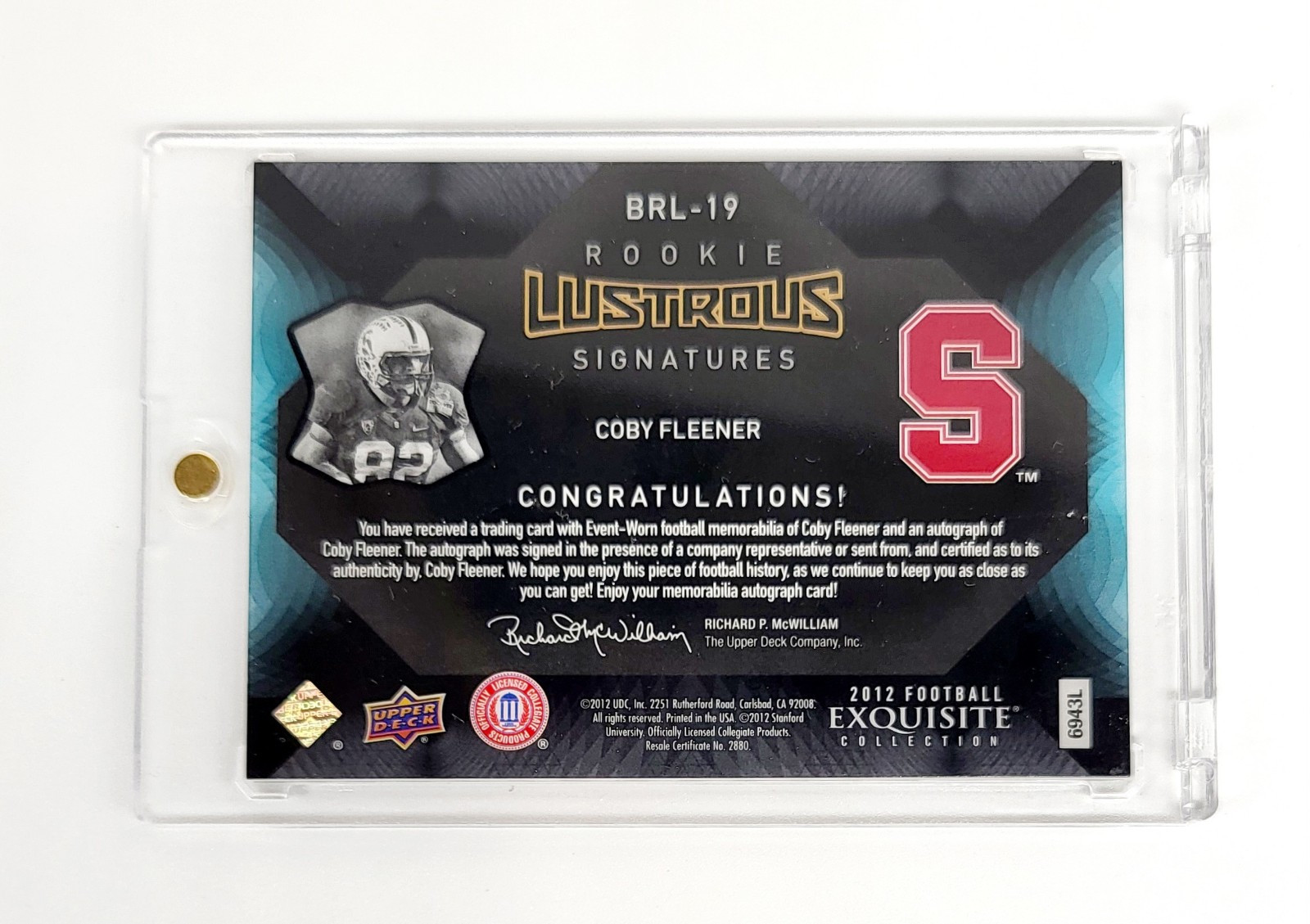 Experience the thrill of adding a rare piece to your sports memorabilia collection with the Exquisite Collection 2012 Black Lustrous Coby Fleener card. Limited to just 99 prints, this card boasts a hard-signed autograph by Fleener himself, authenticated by Upper Deck to ensure its legitimacy and value. The card features a stunning patch from Fleener's time with the Indianapolis Colts, encapsulating a piece of NFL history. Beyond the autograph, the card is a treasure trove of exclusive features, including serial numbering, a rookie card, and a range of desirable inserts and memorabilia. Whether you're a die-hard Stanford Cardinal fan or a seasoned collector of NFL cards, this limited edition piece is a must-have, capturing the essence of Fleener's promising career in professional football. One touch not included. Card will be well protected and shipped in top loader case.