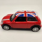 2012 Mini Cooper - Diecast Model - With British Roof Flag - 1:32 Scale - Red - With Opening Doors. It Measures 5 Inches Or 12.7 CM In Length And 2.25 Inches Or 5.7 CM In Width. In Stock And Ready To Ship.