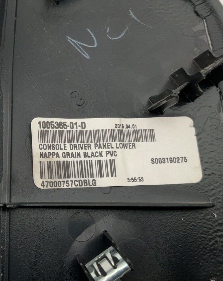 HK Auto Salvage HK Auto Salvage Montebello, CA Business Hours (PST/PDT) Mon - Fri 8am - 5pm Saturday 8am - 2pm Closed Sat & Sun Interior Trim Panel Year: 15 Model: TESLA S Side: Type: Used Category: W Condition: VIN: 5YJSA1S29FF082735 Vehicle Stock #: A406 Part Stock #: 0000000158 Vehicle Info: BLACK EXT,CREAM INT Additional notes: 2012-2017 Tesla Model S X Lh, Left Front Driver Side Center Console Tunnel Trim Oem 1005365-01-d Interchange: Also fits: Search for more parts from this donor vehicle Search for more parts for TESLA S Airbag Notification If the item above is an airbag, I certify this airbag is not subject to recall and will be shipped in accordance with hazmat shipping requirements . Payment We accept credit cards through eBay Managed Payments only Sales tax collected by eBay where applicable COD available for orders placed for delivery to local businesses; please contact us prior to purchase to arrange Pay on pickup available for orders placed for local pickup Shipping We ship by FedEx, UPS, and USPS. Most items ship within 24 hours of payment; items paid for on the weekend or holidays ship on the following business day. Any free shipping we offer is for the continental United States only. If you are from Hawaii, Alaska, or a Territory of the United States, please request a shipping total before bidding and we will do our best to keep the cost low. Local delivery and local pickup options are also available. Warranty & Returns 30-day standard warranty on all general parts 90-day standard warranty on engines and transmissions Please verify fitment independently prior to purchase, as the information in the "compatibility" section above is generated by eBay Motors and not from us. If you have questions or concerns about fitment, please contact us prior to purchase. Contact Us If you have any questions regarding an eBay item, please CONTACT US via eBay messaging before you make the purchase. Please verify fitment independently prior to purchase, as the information in the "compatibility" section above is generated by eBay Motors and not from us. If you have questions or concerns about fitment, please contact us prior to purchase. After you have received your product in satisfactory condition, please leave us positive feedback. If there is a problem with your purchase, do not leave neutral or negative feedback: CONTACT US so that we can help you to resolve your issue to your satisfaction. Powered by Checkmate
