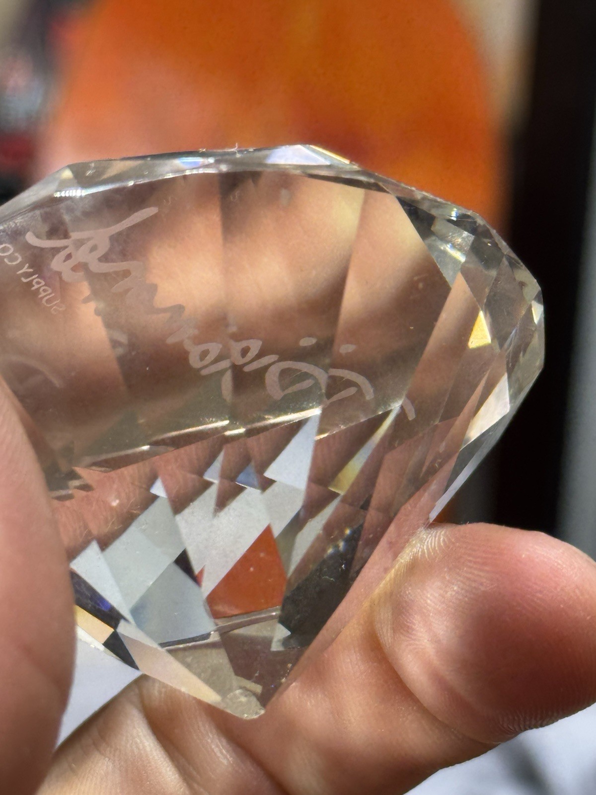 2013 Diamond Supply co. Diamond Paperweight Clear Glass - Used - few mild skuff marks and chip at point of diamond as shown in pic but over all good condition