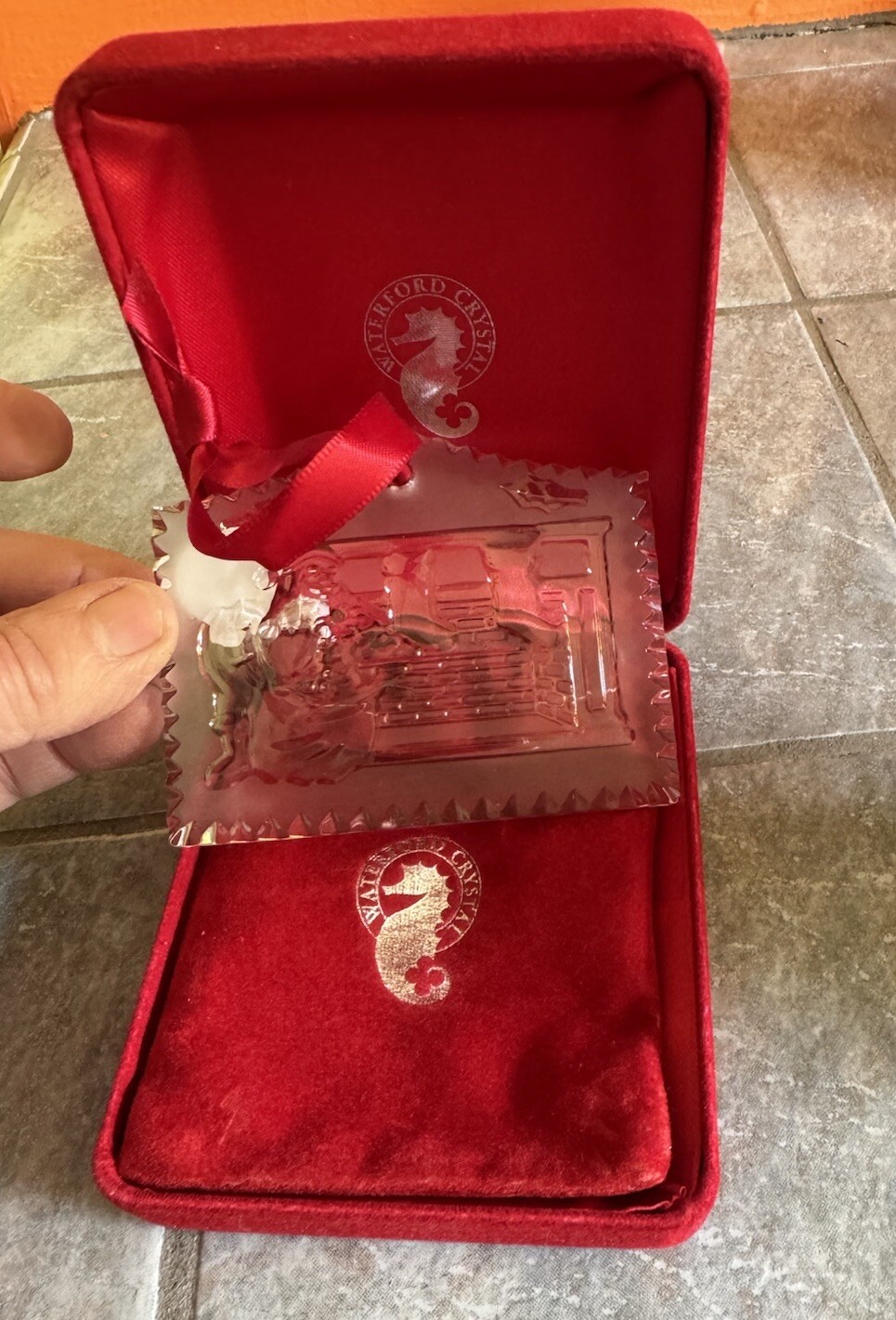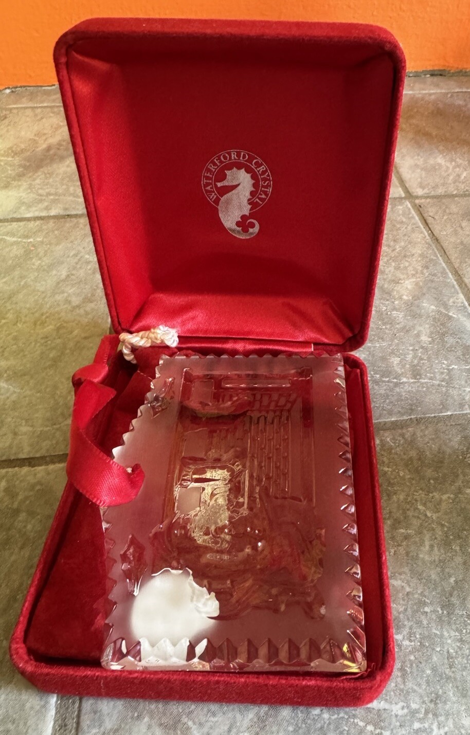 2013 WATERFORD TWAS THE NIGHT Annual ORNAMENT I don't have the box or enhancer I do have a red Waterford case/box with pouch I will include though for you to store it..The pouch is a little tight do It is in good condition Please See Pictures