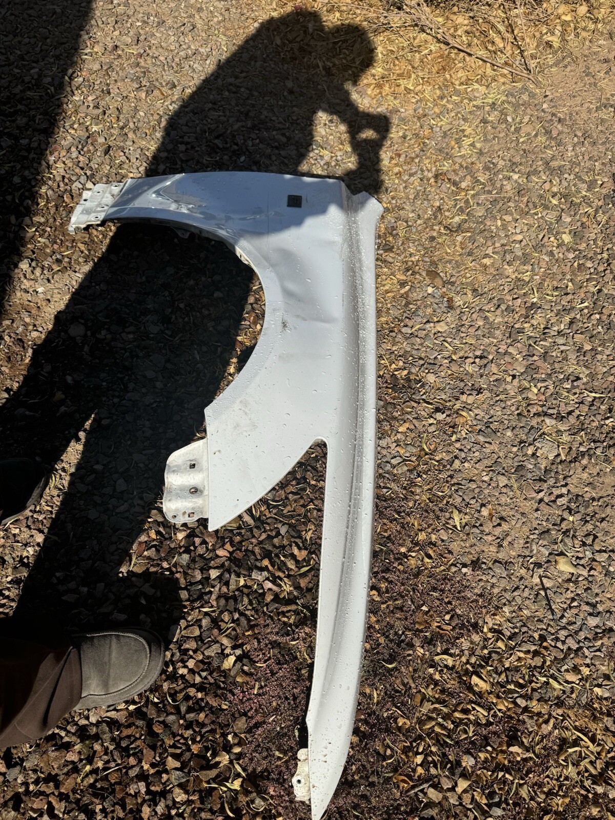 This is a passenger side F Sport fender for a 2013-2017 Lexus LS460. It is white in color, made of steel, and has a painted finish. The attachment type is bolt-on, and it is designed for the front right placement on the vehicle. This fender is not a vintage part, nor is it a performance part. It is a specific fit for the mentioned vehicle model and is not a universal fitment. DAMAGED