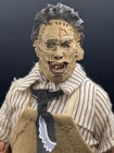 The 2014 NECA Real Toys Texas Chainsaw Massacre Leatherface clothed action figure is a detailed and collectible toy inspired by the iconic character from the classic horror film. Figure includes the chainsaw and hammer accessories The Chainsaw has a slight crack on the handlebar The figure has some slight scuffs here and there but is overall in good condition