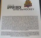 The 4 Packs included are: 2014-15 Upper Deck Series 1 Hockey 8 Card Hobby Pack - UPC: 053334 825702 2015-16 Upper Deck Series 2 Hockey 5 Card Blaster Pack - UPC: 053334 849449 2015-16 UD O-Pee-Chee Platinum 4 Card Hobby Pack - UPC: 053334 851541 2016-17 UD O-Pee-Chee Platinum 4 Card Blaster Pack - UPC: 053334 868150 mint packs