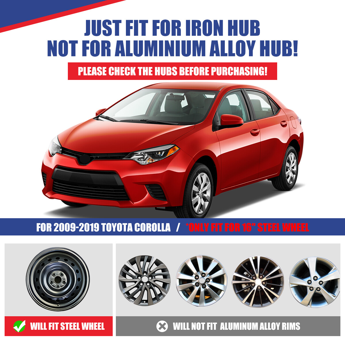 For 2014-2016 Toyota Corolla 16" Set Of 4 Wheel Covers Full Rim Snap On Hubcaps Feature: π Please Ensure to Check your Tire/Wheel Size Before Purchase! Designed for (P16) 16" Stock Steel Wheels and will not fit over alloy wheels π For Replacement with Fast & Easy Snap-on Installation - Made from Premium ABS Material β Lab & Road Tested for Performance and Ultimate Durability π Adjustable Retention Rings assures Firm Grip Gives Support to the Hubcaps Making Sure They Stay in Place. Locate the Curve on the Retention Ring and Match to the Tire Air Valve to Install π Installation Instructions & Video Available - Please refer to the Video and images available as well as detailed instructions below for assistance Fitment: For 2014-2016 Toyota Corolla Specification: Quantity: 4 PCS Material: ABS Color: Chrome & Black Lacquer Wheel Size: 15 inch Finish: Glossy Placement on Vehicle: Front/Left/Rear/Right Package Includes: 4* Wheel Cover Hubcaps Payment Delivery details Terms of sales About us Contact us Payment π We accept PayPal (Recommended), credit card, VISA, Google Pay & Discover etc. π Please submit your payment within 7 days after your purchase. π If not, eBay will automatically open an Unpaid Item Dispute on our behalf if the item(s) are not paid within 7 days. Delivery details π Please double check your delivery address and contact information. π All items will be shipped within 1 business days after payment received. π Tracking numbers will be easily accessible ASAP they are created and processed. Terms of sales π Free 30 days Return, we will cover the return post fee. π If a defective product was received, please do not hesitate to message us via eBay message. π We will response in 24 hours in business to resolve the problem π We stand behind our products. Items can be returned for exchange or full refund within 30 days from the date you receive. About us π Wolfstorm has a huge warehouse and office located in the United States. π All US domestic 48 states customers are able to benefit from the FREE SHIPPING services. π Our experienced, professional customer service representatives offers prompt and courteous service. π Best quality products, outstanding services and professional experience keep our customers. Contact us π Please feel free to contact us if you have any problems. π Emails will be replied within 24 hours in working days. π After hours emails will be replied on the next business day. On Apr 23, 2025 at 01:02:36 PDT, seller added the following information: