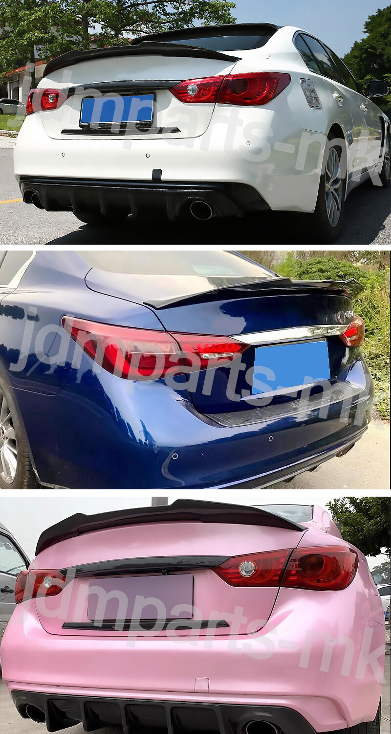 Duckbill Trunk Spoiler PSM Style For Infiniti Q50 2014-2023 Carbon Fiber Painted We appreciate you place an order. If you are satisfied with the item, please take a moment to reward our efforrs by leaving us a POSITIVE FEEDBACK and perfect " 5 STAR" scores. If you intend to leave a neutral or negative fe edback, please contact us firstly, so that we can satisfactorily address your concerns and rectify any issues. Specification: Condition: 100% Brand New Color:Carbon Fiber Look Style: PSM Style Material: High Quality ABS Plastic Placement on Vehicle: Rear Surface Finish: Painted Size: 124.5*28*5.5cm(49.01"*11.22"*2.16") Gross Weight: 5.18LB (2.35KG) Features: - Easy install and durable use. - Great quality and great fitment. - 100% brand new and high quality guaranteed. - Strict quality control standards to build and test. - Perfect cover that is useful,helpful and so practical. Fitment: Fit Infiniti Q50 Q50S Sedan 2014-2023 Package Include: 1x Rear Spoiler;1x Double Side Tape Note: -Please check the size measurement chart carefully before making payment. -Please allow 0.5-1 inch difference due to manual measurement.(1 inch=2.54cm) -The color of the actual items may slightly different from the listing images due to different computer screen, thanks for your understanding. -Instruction is not included. -Professional Installation Recommended. 1. We Accept Payment Through Paypal Only. 2. The eBay members must fulfill the requirement. (PayPal verified and confirmed address; the account holder must be the receiver). 3. Please complete your payment within 2 days after the item is won. If you have difficulty completing your payment within the required time, please contact us. Non-Pay Dispute will be filed against your account after the 2 th day. 4. Our price does not include Duties, Value Added Taxes, Customs Clearance Fees, and other charges. These charges are the buyer's responsibility. Please check with your country's customs office to determine what these additional costs will be before bidding/buying. 5. The buyer needs to pay for the above fees in case that occurred for certain goods. If the parcel returns back to us due to the buyer refuse to pay those fees, we would not send the parcel again unless the buyer completes those fees and pay all the return and resend cost. The buyer can not cancel the order or request a refund due to this reason. Free Shipping with FedEx/UPS/USPS to the Mainland 48 states ONLY PO Box, AK/HI/PR and APO/FPO address will not be accepted. Package will be shipped to your eBay shipping address within 24 hours (except for weekend and public holiday) after payment is cleared. Payment cleared/received on Friday will be shipped on the next business days (Monday or Tuesday) Orders are typically shipped in 1-2 business day after payment is completed. Shipping confirmation with tracking number will be sent to your eBay email address when your order is shipped. Please note we do not ship orders on Saturdays, Sundays, and national holidays. All our items will be shipped to the address you submit , please confirm your address on before you bi d or purchase . Shipping time may vary depends on your area . Delivery may be delayed due to extreme weather or special circumstances. Please wait patiently. Import duties, taxes, and charges are not included in the item price or shipping/handling price. These charges are the buyer's responsibility. Please check with your country's customs office to determine what these additional costs will be prior to bidding or buying. All items sold by us are being described to the best of our abilities, as accurate as possible, and with utmost conscientiousness on our part. However, to avoid any potential oversights, we respectfully request your assistance in helping us to make this a mutually satisfactory transaction by THOROUGHLY reviewing item description and photos, and asking all questions PRIOR TO BIDDING. We stand behind the quality of all of our products. All products are double inspected before stocking and dispatching. However, sometimes mistake may slip by and the product may get damaged during the process of delivery. If such trouble occurs to you, please take a minute to refer to the following instruction. If the package arrives at your location with obvious shipping damage (including broken envelop, empty package and etc), please refuse the shipment. If you find the item is defective after you accept the shipment, please save everything that is attached in the package, including all the documents, and contact us immediately, either through eBay message or email address. You should state your item ID, item title and what the damage is clearly in your email. And please be advised that digital photos must be attached to the email you send. And please bear in mind that you should contact us within 3 days since the day you receive the package, or it will be your own responsibility to take the lost of the defective item. Specification: Condition: 100% Brand New Color:Carbon Fiber Look Style: PSM Style Material: High Quality ABS Plastic Placement on Vehicle: Rear Surface Finish: Painted Size: 124.5*28*5.5cm(49.01"*11.22"*2.16") Gross Weight: 5.18LB (2.35KG) Features: - Easy install and durable use. - Great quality and great fitment. - 100% brand new and high quality guaranteed. - Strict quality control standards to build and test. - Perfect cover that is useful,helpful and so practical. Fitment: Fit Infiniti Q50 Q50S Sedan 2014-2023 Package Include: 1x Rear Spoiler;1x Double Side Tape Note: -Please check the size measurement chart carefully before making payment. -Please allow 0.5-1 inch difference due to manual measurement.(1 inch=2.54cm) -The color of the actual items may slightly different from the listing images due to different computer screen, thanks for your understanding. -Instruction is not included. -Professional Installation Recommended. PAYMENT 1. We Accept Payment Through Paypal Only. 2. The eBay members must fulfill the require