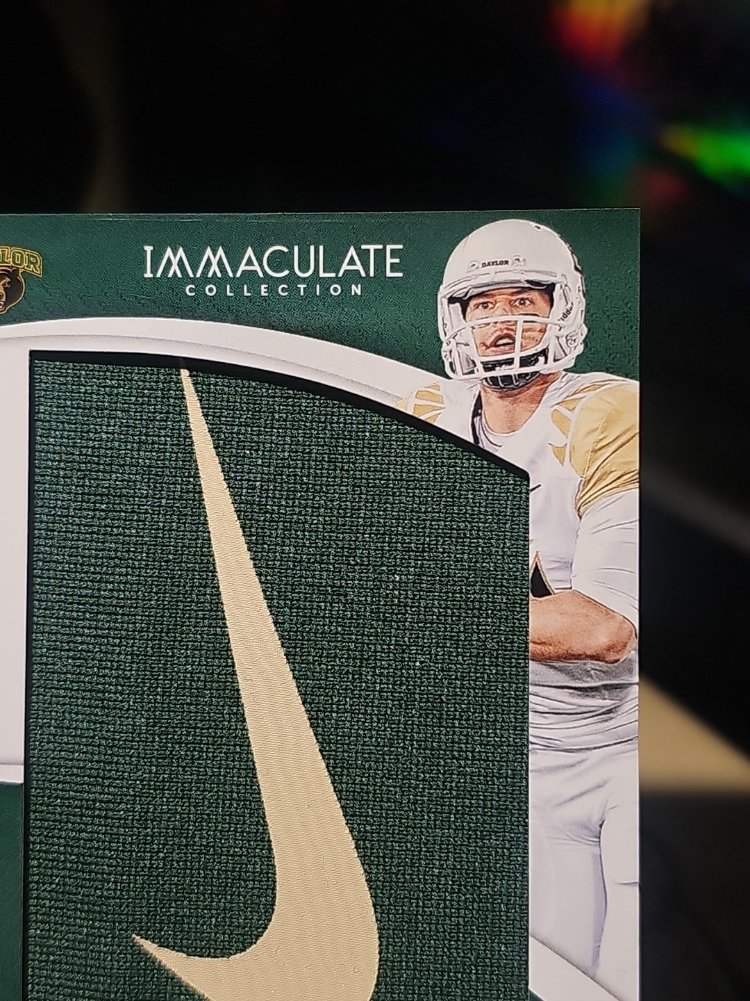 This card is a must-have for any serious collector! The 2015 Panini Immaculate Nike Swoosh Patch featuring Bryce Petty is stunning—limited to just 5 copies, the Platinum Green parallel makes it pop. The high-quality patch and sharp design capture Petty’s Baylor legacy perfectly. A true gem for football memorabilia fans!