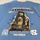 The product is a Size L blue shirt designed for fans of the North Carolina Tar Heels, celebrating their victory as the 2015 NCAA Basketball National Champions. Made by Alstyle Apparel & Activewear, this unisex adult shirt is perfect for supporters of the basketball team. It is a great way to show team pride and commemorate their success in the NCAA Championship. Measurements: Chest: 20" Shoulder to hem: 29"