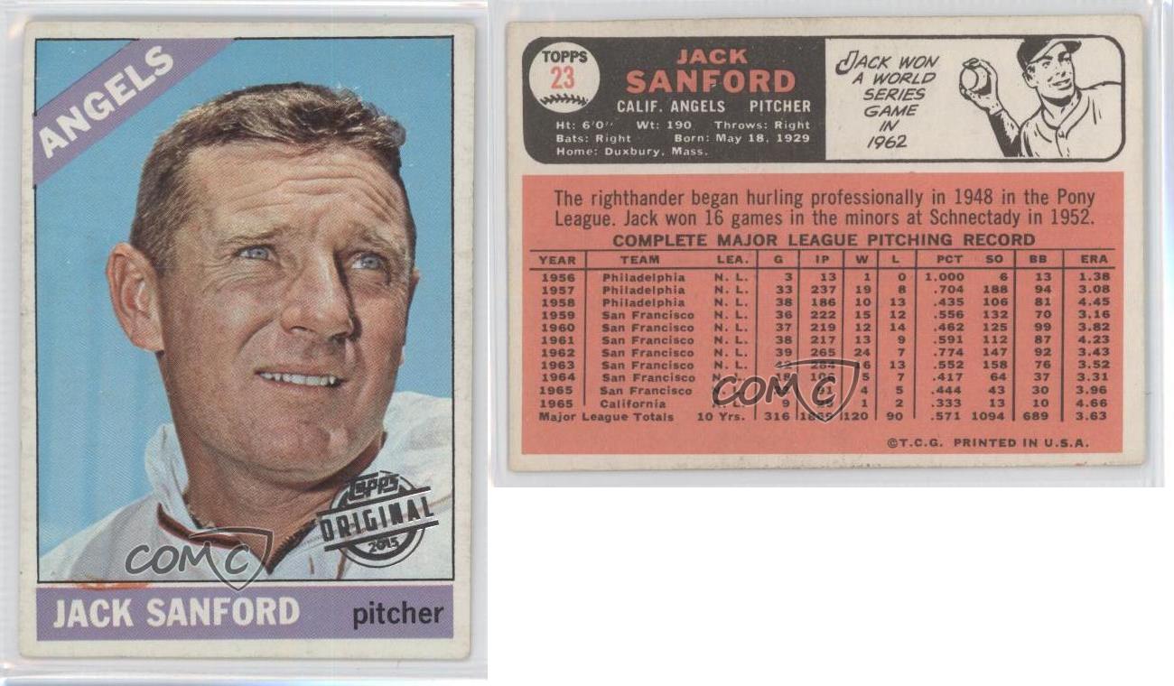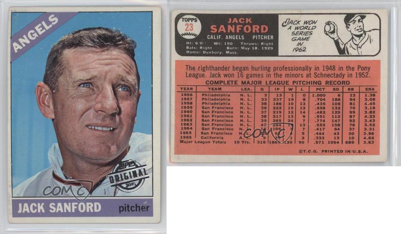 2015 Topps - Originals Buybacks #1966-23 Jack Sanford - Baseball Card - Featuring the Los Angeles Angels - Featuring Jack Sanford Search for more: 2015 Topps Search for more: 2015 Topps - Originals Buybacks View all of our Listings Auctions Buy It Now About Us Located in the beautiful Pacific Northwest, COMC (Check Out My Cards) is the world's largest consignment service for trading card singles. More than 10,000 people have used our consignment service to list over 50 million trading cards. Find out how we can help you consign your items on eBay by contacting us through eBay messaging. COMC -- "The Safe & Easy Way to Buy & Sell" Representative Image - Select Specific Item above to see image of actual item Representative Image - Select Specific Item above to see image of actual item Raw Condition for Modern Cards Unless otherwise noted, raw modern cards are listed in Near Mint-Mint condition or better. A NM-MT card appears to be Mint at first glance, but upon closer inspection, may exhibit some of the following: minor print defects (e.g. roller marks, print line, dimple), minor scratches, slight edge wear, and slight corner wear. Centering is clearly visible in the images provided and does not factor into our condition assessment. Raw Condition for Vintage Cards Unless otherwise noted, raw vintage cards are listed in Excellent condition or better. An EX card may exhibit some of the following: minor rounding of corners, surface wear, print defects, light scratches, and slight edge wear/chipping. Centering is clearly visible in the images provided and does not factor into our condition assessment. Domestic Shipping Combined shipping for multiple items is available. To receive combined shipping, please ensure all desired items are in your eBay shopping cart before proceeding to checkout. eBay limits orders to 40 items per order. We automatically combine multiple orders placed on the same day. If you place multiple orders on the same day, please contact us to request a refund of applicable shipping costs. Signature confirmation may be required on invoices over $400. All cards are protected and shipped securely. International Shipping COMC offers eBay's International Shipping (EIS) for international orders under $2,500* (see country exceptions below). All duties and import fees are paid at checkout; in the rare event that there are additional import fees upon delivery, these are borne by the buyer. EIS packages route through a shipping hub in Erlanger, KY before shipping to their final destination. Please note that EIS does not allow for combined shipments. The shipping rates are determined by eBay and cannot be adjusted. *Maximum sale price exceptions: Colombia, Kuwait ($2,000); Taiwan ($1,539); Chile, Costa Rica, Guatemala, Honduras, Trinidad and Tobago ($1,000); Antigua and Barbuda, Aruba, Belize, Dominica, Grenada, Philippines, Saint Kitts and Nevis, Saint Lucia, Montserrat, Turks and Caicos Islands ($500); Dominican Republic, El Salvador ($200). Please request a shipping quote through eBay messaging for orders that exceed the maximum sale price supported by eBay's International Shipping. You will be responsible for all duties and import fees for international orders shipped outside the EIS. All cards are protected and shipped securely. Payment COMC does not accept offers on our cards through our eBay storefront. COMC utilizes eBay’s managed payments system. If you are experiencing difficulties making a payment, please contact eBay for assistance. Return Policy Returns are only accepted on the rare occasion the item is not as described. If you are making a return, please initiate the return process through eBay so a mailing label can be provided for you. Prior to listing, our expert team carefully assessed this item to represent it accurately. Please review the description and high-definition images prior to purchasing to ensure this item meets your satisfaction. We welcome you to contact us if you have further questions about this item. Trust and Integrity COMC carefully assesses each item consigned to us to prevent fraudulent items from entering the marketplace. If you believe an item offered on COMC may be fraudulent, please contact us with details so we can investigate the issue. Items we determine are outside our supported items policy may be removed. Last Modified: 5/15/2025 3:04:11 PM PDT