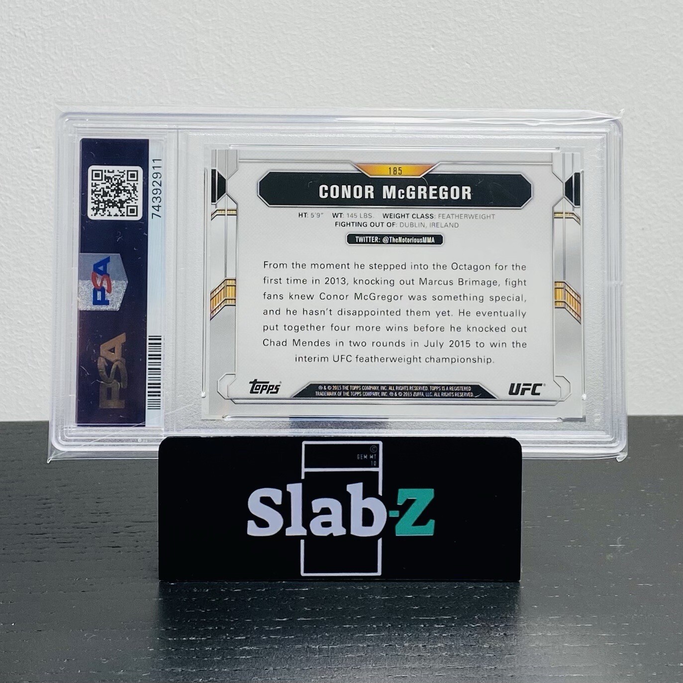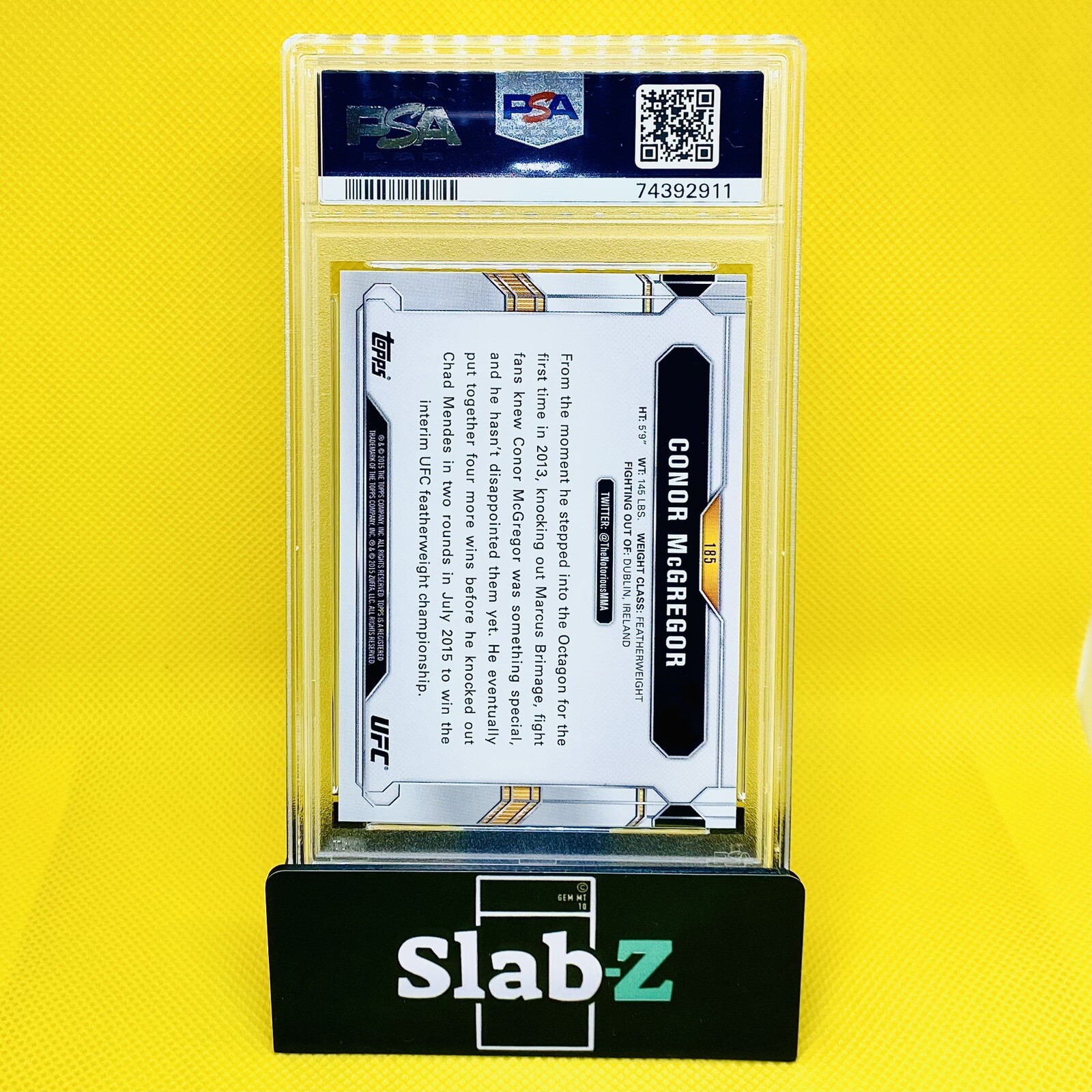 This single-parallel 2015 Topps UFC Chronicles trading card features the notorious Conor McGregor, with a 20 Pt. card thickness. The card is an original from Topps, making it a great addition to any UFC trading card collection. The card comes from the 2015 Topps UFC Chronicles set and is in excellent condition. It's a standard card size and made of card stock material. This hard-to-find card is a must-have for any fan or collector of Conor McGregor memorabilia. **Buy multiple items, and save money with our FREE COMBINED SHIPPING (info below!) ** PACKAGING This graded card is sleeved within a teambag and surrounded by cardboard/bubbles, and will be sent in a padded letter (17x13x3cm). US DOMESTIC & INTERNATIONAL SHIPPING Hong Kong Post office/e-Express service that offers a fast and affordable full tracking solution with eBay, for reliable dispatch of commodities to customers with insurance, anywhere in the world. Estimated US & International delivery time is 5-10 working day(s ELECTRONIC CUSTOM DECLARATION FOR INTERNATIONAL SENDING For any international sending (please see extended list below), we will prepare electronic custom declaration containing: - Number of items - Custom declaration: each item will be declared as “Sales of Good” with the price paid by the sender (be aware from your country side if any tax applies, however most countries in the world do not charge duties on trading cards, like US/EU/UK etc). FREE COMBINED SHIPPING UP TO 4 ADDITIONAL RAW CARDS After you buy one graded card, you can add up to 4 additional RAW CARDS and get free combined shipping for those: PLEASE CLICK ON "Request Total" in your Shopping Cart BEFORE PROCESSING YOUR PAYMENT. We will send you the revised invoice with the discounted shipping cost for your approval. When you buy one GRADED card, you can add up to 4 more RAW cards to get FREE COMBINED shipping. From the 6th card in the same order, we will charge USD0.50 for each additional raw card. And for each additional graded card, we will charge USD6 per graded card. CARDS CONDITION The item shown is the exact item you will receive! Please see the provided picture(s) before buying/bidding. We ALWAYS mention in title and description if there is any visible/major flaw. However we care to select and provide the best condition cards to our collectors, we are not a grading company. For our non graded items, we do not ensure any grading due to minor/factory flaws (macro/print marks, soft corners/edges/out centred, etc). For our graded items, some cases might have external/minor dents, scratches we are not responsible for. —-------------------------------------- List of Destinations Requiring Submission of Electronic Customs Declaration sending all mail items containing goods: Continent Destination Asia Jordan, Korea and the Mainland Central and South America Brazil Europe^ Austria, Belgium, Bulgaria, Croatia, Cyprus, Czech Republic, Denmark, Estonia, Finland, France, Germany, Greece, Hungary, Ireland, Italy, Latvia, Lithuania, Luxembourg, Malta, Netherlands, Norway, Poland, Portugal, Romania, Slovakia, Slovenia, Spain, Sweden, Switzerland and the United Kingdom North America Puerto Rico*, the United States of America and Virgin Islands of the United States of America* Oceania Australia, Caroline Islands*, Guam*, Marina Islands (Northern)*, Marshall Islands*, Micronesia*, Palau*, Samoa (the United States of America Territory)* and Wake Island* ** FOLLOW US ON EBAY OR INSTAGRAM (@slabzcollectable) TO RECEIVE OUR SPECIAL PROMOTIONS!**