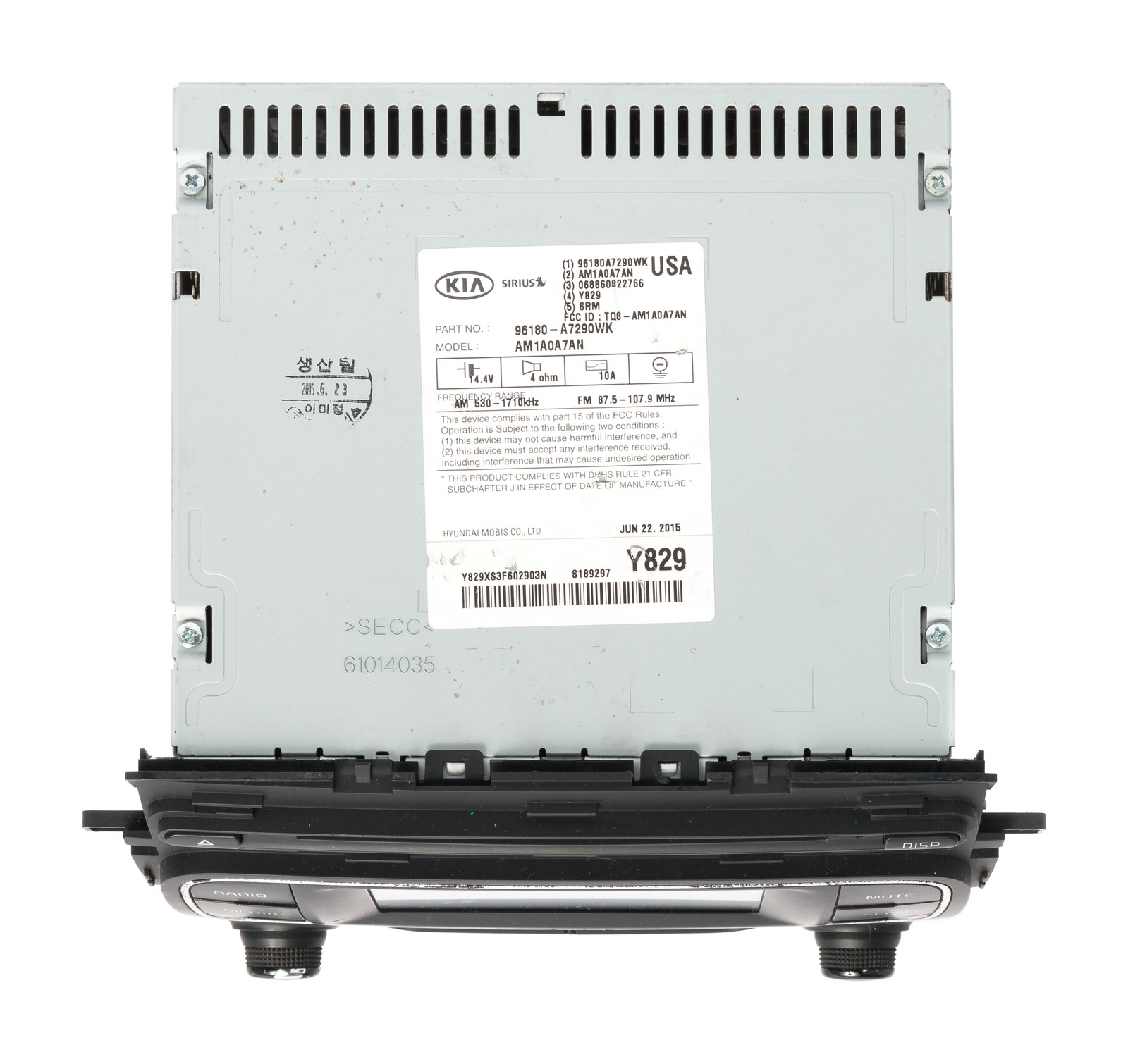 Largest Inventory of Factory Car Audio in the USA! 2015-2016 Kia Forte AM FM Sirius XM Bluetooth MP3 w Single-Disc CD 96180-A7290WK 2015 2016 Kia Forte AM FM Receiver Sirius XM Bluetooth MP3 with Single-Disc CD Player No Unlock Code Required Part Number: 96180-A7290WK Interchange Part Number: 638-73567 Compatible Part Number: None Option Code: None Free Shipping to All 50 States! Free Live Technical Support! 90 Day Warranty Included! ------------------------------- This is a Professionally Remanufactured AM FM Receiver Sirius XM Bluetooth MP3 with Single-Disc CD Player that fits 2015-2016 Kia Forte . Please see the pictures for more cosmetic details. No Unlock Code Required . This item has been cleaned, serviced as needed, and thoroughly checked. The function is in 100% working order! This unit is being sold as a REPLACEMENT ONLY! The part number is 96180-A7290WK . If you do not have this exact part number or compatible part number currently in your vehicle, it will likely NOT WORK . If you are unsure of your part number, contact us with your VIN and they should be able to provide you with the correct part number. They may look the same and have the same plugs but data streams may be different, not allowing them to code. For example, external amps are used in some cars and will not allow interchange, etc. As you can see from our feedback, we package carefully and ship promptly via UPS or FedEx Ground. Please verify that this is the item you require before purchase. The item you receive will be as pictured and described. Thank you for your purchase! ------------------------------- FOR APPLICATION ASSISTANCE OR TECHNICAL SUPPORT, CONTACT US 9am - 6pm EST, Monday - Friday ------------------------------- Welcome to our eBay store! To make your purchase as simple and easy as possible, please refer to the store policies listed below. CHECKOUT Click Buy It Now at the top of this listing to immediately proceed with the checkout and payment process. PAYMENT We accept the following forms of payment. PayPal Credit Card Phone Payment SHIPPING Free Shipping to all 50 states! Radios will generally be sent via UPS to the lower 48. Some smaller items and radios going to AK or HI will be sent via USPS Priority or First Class Mail. International purchases are sent First Class International when possible and First Class Priority or UPS International otherwise. Most items are shipped within 1-3 days of processing but there are sometimes short delays due to final testing or build procedures. Please contact if your purchase is time sensitive. CONTACT If you have any questions or concerns before or after purchase, please do not hesitate to contact us M-F 9a to 6p Est. All our products have a 90 day warranty with free live tech support!
