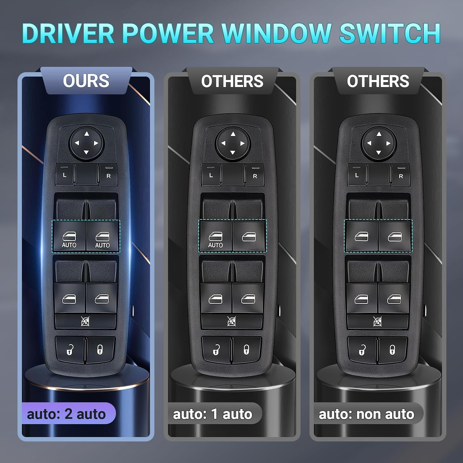 REPLACEMENT WINDOW SWITCH - The master power window switch fits in the bezel and perfect replaces the front left driver side window switch on your Chrysler, Dodge ,Ram vehicle. The illuminating light is blue. It is a direct replacement for the factory window switch button. The replacement switch is designed to match the function and appearance of the original switch, exactly OEM design to replace your broken door window switch. FIT THE FOLLOWING VEHICLE - The drivers side window switch compatible with Chrysler Dodge Ram window switch button - 2015-2017 Chrysler 200 | 2011-2020 Chrysler 300 | 2011-2019 Dodge Charger | 2015-2021 Jeep Grand Cherokee | 2016 Ram 1500 2500 3500 4500 5500 4-Door. Commonly found on popular 2011, 2012 chrysler 300 C S; 15, 16, 17 chrysler 200 C S; 11, 12, 13, 14 charger; 16 Ram 1500 2500 3500 4500 5500 REPLACE PART NUMBER - The switch Replaces 68030823AE, 68030823AB, 68030823AC, 68030823AD, 68139805AD, 68139805AA, 68139805AB, 56046823AE, 56046823AC, 56046823AD 68262253AC, 68262253AA, 68262253AB, 1S14259, 9996W. There are multiple versions of this kind of window control switch with same look. Please check your old part against the picture and product description before purchasing to make sure this parts will fits on your vehicle. EASY INSTALLATION- 3+8 pins terminal connector for plug and play style. Just need to remove the broken power window control and replace it, easy to install. 68139805AD master power window switch front left driver Side for 2011-2019 Chrysler 200 300 Window Switch, Dodge Charger Ram Window Switch 68139805AB 68231805AA 68271206AB Window Switch is a perfect solution. WHAT YOU'LL GET - 1 Set of master power switch & 12 Months Warranty. Designed to meet or exceeds standards of original factory switch. Even though this is not a genuine window switch, but it works even better and lasts longer. If the part ever fails ( doesn't work ) on your vehicle simply contact us for an exchange. Save hundreds of $$ from Yikesai. Enjoy your shopping !!! And please attention, please check your OE number / car model before having your order. Thanks. Product Description POWER MASTER WINDOW SWITCH FIT THE FOLLOWING VEHICLE 2015-2017 Chrysler 200 2011-2020 Chrysler 300 2011-2019 Dodge Charger | 2015-2021 Jeep Grand Cherokee 2016 Ram 1500 2500 3500 4500 5500 4-Door Replaces# 68030823AE, 68030823AB, 68030823AC, 68030823AD, 68139805AD, 68139805AA, 68139805AB, 56046823AE, 56046823AC, 56046823AD 68262253AC, 68262253AA, 68262253AB, 1S14259, 9996W.