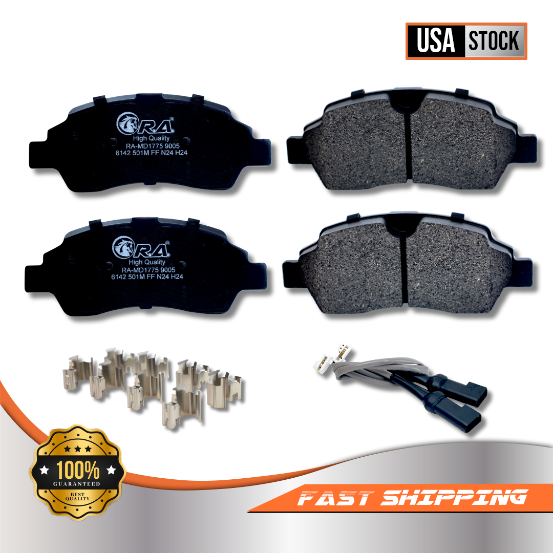 Front and Rear Disc Brake Pads for 2015 - 2019 Ford TRANSIT-350 3.2L 3.5L 3.7L Semi-metallic brake pads have several benefits, including: Durability : Made from a combination of metals like iron, steel, and copper, semi-metallic brake pads are more durable and long-lasting. High performance : They offer excellent braking performance, especially in high temperatures, making them ideal for heavy-duty or high-speed applications. Good heat dissipation : They handle heat well, which helps maintain braking efficiency and prolongs the life of the pads and rotors. Stable friction performance : They have stable friction performance across a variety of temperatures. Strong initial braking power : They have strong initial braking power. Brake pads are a key component of a car's braking system, and choosing the right type of brake pad for your vehicle is important for a safe and smooth driving experience. Front and Rear Semi-Metallic Brake Pads with Hardware Set Kit Includes: 2x Front Premium Semi-Metallic Brake Pads - RA-MD1774 2x Rear Premium Semi-Metallic Brake Pads - RA-MD1775 *Replacement Front and Rear Driver and Passenger Side Brake Pads Fits MAKE MODEL YEAR RANGE SPECIFIC DETAILS FORD TRANSIT-350 2015 - 2019 All Models Contact us We can be contacted at any time through eBay messages if you have any questions, comments or product requests. We will respond to you within 24 hours and do our best to help you out! We encourage our customers to contact us with any questions or concerns! We'd like to be sure you are completely satisfied with your purchase. Open hours (EST) Monday: 9a.m. - 4p.m. Tuesday: 9a.m. - 4p.m. Wednesday: 9a.m. - 4p.m. Thursday: 9a.m. - 4p.m. Friday: 9a.m. - 4p.m. Saturday: Closed Sunday: Closed Payment We use eBay's Safe and Secure Checkout. We accept PayPal, Visa, MasterCard, Amex (Immediate Payment Required). Sales tax may be applied to your order depending on your location and local regulations. This will be automatically calculated and added during checkout. Shipping All orders placed before 3pm (Eastern Standard) will be shipped the same business day. Orders made after 3pm (Eastern Standard) will be shipped the following business day. All orders in the continental 48 States will be shipped FREE of charge via USPS, FEDEX or USPS at our discretion. Orders outside the continental 48 States (Alaska, Hawaii, Puerto Rico, US territories, or International) will be required to pay a surcharge for shipping. International orders will be shipped via USPS Priority Mail International through eBay Global Shipping Program. Returns Customer must contact RA Auto Parts within 30 days of receiving shipment for approval of any return or exchange. Returns or exchanges will be subject to a 20% restocking fee of the original item purchased plus cost of return shipping and replacement shipping. Exchanges due to shipping errors by RA Auto Parts will not be subject to a restocking fee or shipping charges.