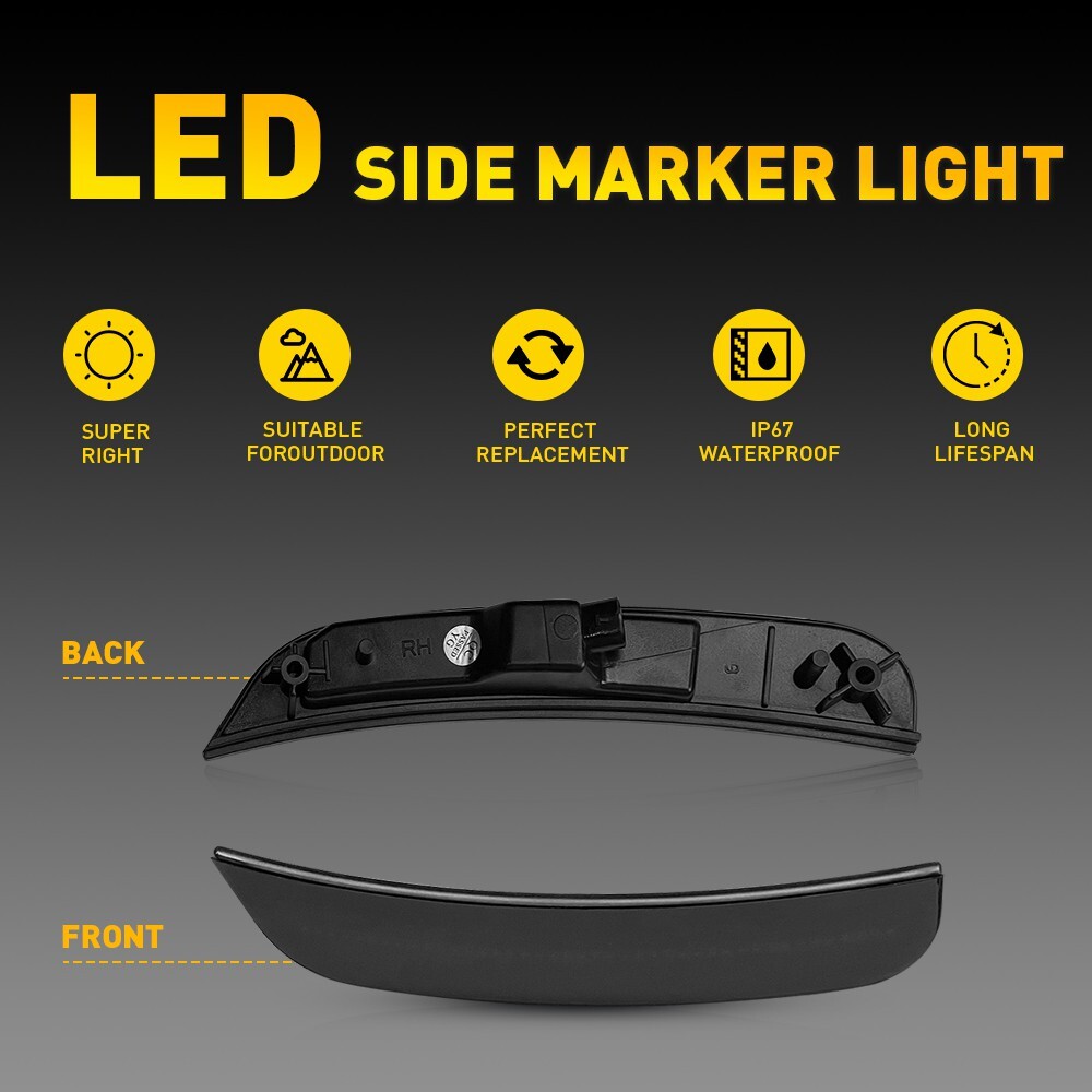 These smoked LED marker lights are a sleek upgrade for the Chrysler 300. The amber glow is bright yet stylish, and the IP67 waterproof rating means they’ll hold up in any weather. Installation was simple—perfect fit right out of the box. The smoked lens adds a sharp, modern look without sacrificing visibility. Definitely makes the front end stand out. Great value for the quality!