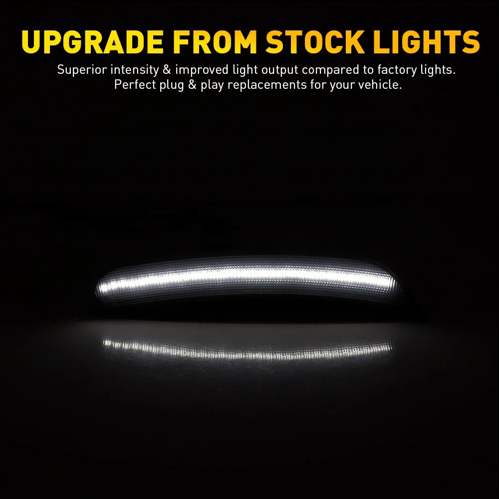These smoked LED side markers add a sleek, modern look to the Chrysler 300 while providing bright, crisp lighting. The smoked lens gives it a clean, custom appearance, and the fit is perfect—no gaps or alignment issues. The LED strip delivers excellent visibility, and the IP67 waterproof rating ensures durability in any weather. Installation was straightforward, and the quality feels premium. Definitely upgrades the rear styling!