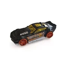 This is a 2016 Hot Wheels DTY12 diecast car in black with orange wheels and yellow windows. It is in 1:64 scale and part of the Hot Wheels series. The car is not autographed and is recommended for ages 3 and up. It is a limited edition model made of diecast material, suitable for boys and girls aged 3 to 17 years. Made in Indonesia.