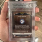 This is a 2016-17 Panini Instant Joel Embiid sports trading card graded 8.5 by Beckett Grading Services (BGS). The card features basketball player Joel Embiid and is part of the 2016 Panini set. It is a single trading card from the sports trading cards category.