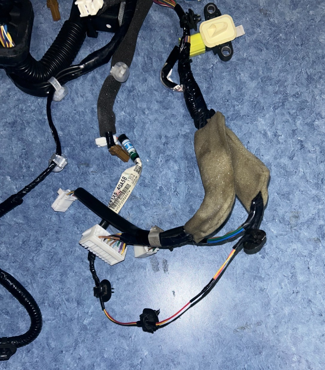 The product is a front left driver side door wire wiring harness cable OEM for a 2016-2018 Infiniti Q50. It is a direct replacement part with the manufacturer part number AB125-4GA0A. The wire harness is black in color and durable, offering a reliable connection for the vehicle's electrical system. This specific wire harness is designed for the front left side of the car, providing a seamless fit and functionality.