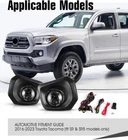 Store Categories Other Car Refrigerator Front Bumper Rear Bumper Fender Flares Inner Fenders Side Steps Running Board A-Pillar Light Mount Brackets Headlights Taillights Fog Lights LED Headlights LED Taillights LED Fog Lights Jeep Chevrolet Ford Toyota Dodge GMC Clear lens: https://www.ebay.com/itm/402266055306 Yellow lens: https://www.ebay.com/itm/403771771627 About this item π Exact OEM Fit: Direct fitment for OEM lenses with no complex modifications. The fog lights are compatible for 2016-2023 Toyota Tacoma SR/SR5 Model Only,Not Fit for Limited, TRD Off-Road, TRD Sport, TRD Pro models. The fog lamps were sold in a pair: include left side (driver side) and right side (passenger side). π Excellent Quality: Fully sealed, waterproof, dust and corrosion resistant made the fog lights perform well and prevent moisture and dust from getting inside the fog light housing. π Bright Illumination: The fog lights come with one pair of H11 12V 55W light bulbs, which allow you to see and be seen by oncoming drivers even through a thick fog. High intensity lamps provide exceptional illumination for increased driving safety. π Easy Installation: Save your time, easy to install. The fog lights are designed for quick and easy installation (Switch and wiring kit are included in the package). Needn't for any modifications. π DOT/SAE Compliance: The fog lights own SAE compliance and DOT approval. Thoroughly tested to meet federal and international standards, the fog lamps are fully street legal. Vehicle Fitment π For 2016 Toyota Tacoma π For 2017 Toyota Tacoma π For 2018 Toyota Tacoma π For 2019 Toyota Tacoma π For 2020 Toyota Tacoma π For 2021 Toyota Tacoma π For 2022 Toyota Tacoma π For 2023 Toyota Tacoma οΌFit SR & SR5 models onlyοΌ Not Fit for Limited, TRD Off-Road, TRD Sport, TRD Pro models. Specification π Bulb Type: H11 12V 55W π Wiring Harness: Included π Certification: DOT/SAE Compliance π Color Finish: Black Housing+Smoke Lens π Replaces Original (OE) Part #: Light body: L:8122008020, 812200W040;R:8121008020, 812100W050; Outer frame: L:52128-04020;R:52127-04020; π Partslink Number:Light body:L:TO2592124, TO2592133;R:TO2593124, TO2593133; Outer frameοΌL:TO1038195οΌR:TO1039195; Package Included π A Pair of Fog Lights (Driver and Passenger side) π A pair of bezel and bulbs (Left and Right side) π Switch and wiring kit Payment Delivery details Terms of sales About us Contact us Payment We accept PayPal, credit card , Apple Pay & Google Pay etc. Delivery details All items will be shipped within 1-3 business days after payment received, we will try our best to ship out as soon as we can, hope for your understanding. Please double confirm your address and contact information, which will help the delivery faster and more accurately. Note οΌbuyers who purchase international products need to pay import tariffs!!! Terms of sales Professional installation is highly recommended. Any problem of the item please feel free to contact us first , please D o Not leave negative feedback before that, or simply return it within 60 Days in original condition. We will resolve it for you ASAP. About us Any questions please do not hesitate to contact us directly by eBay message . We will reply you within 24 hours asap, thanks for your understanding. Contact us Should you have any problem or require any further information please feel free to contact us . If you are satisfied with our product and service, please kindly leave us a positive feedback. Popular Categories On Mar 24, 2025 at 20:22:23 PDT, seller added the following information: