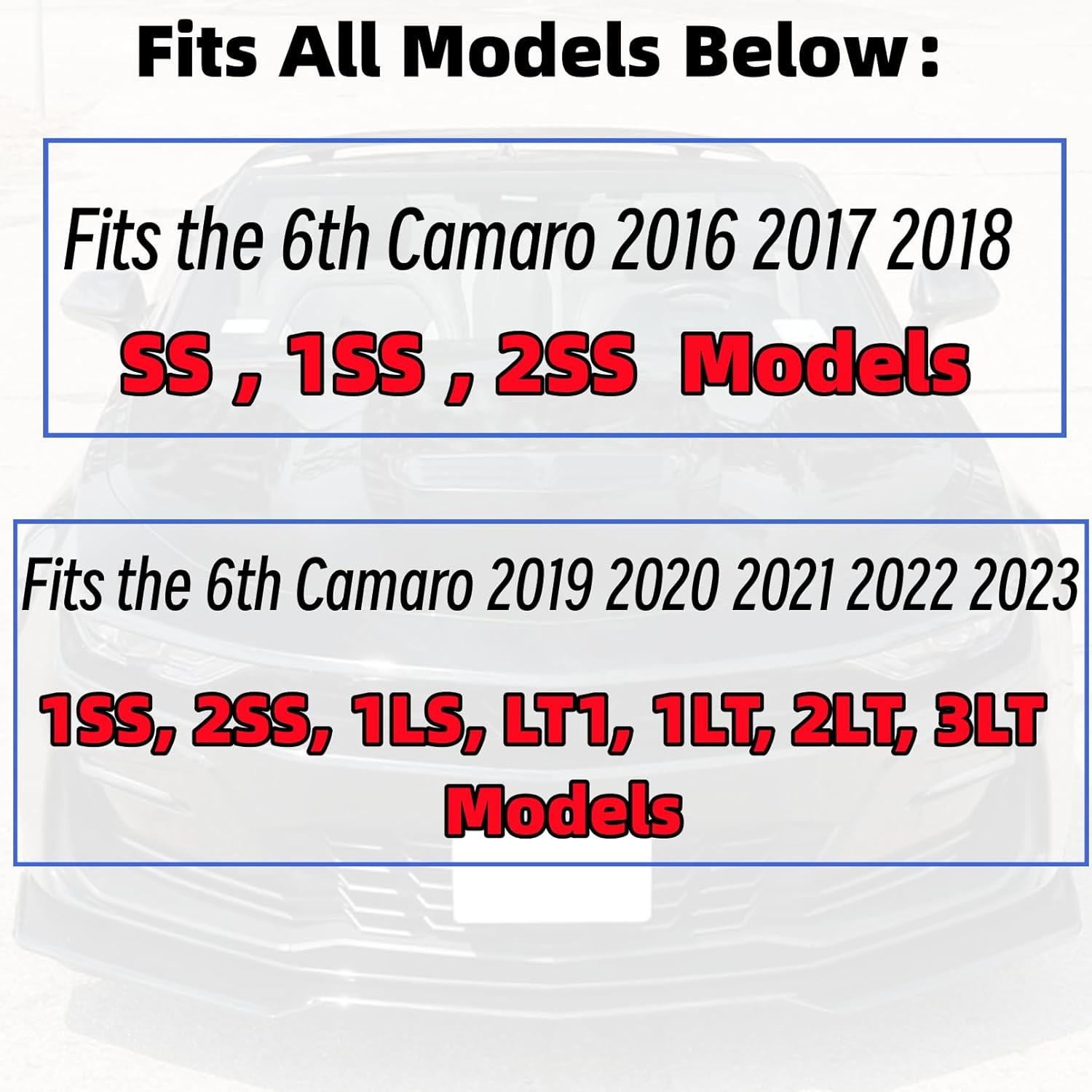 Front Bumper Lip Splitter Spoiler Compatible with 2016-2024 Chevy Gloss Black Product Details Installation Type: Screw-In Manufacturer: MUTUSAISI Model: D666 Item Weight: 3.79 pounds Package Dimensions: 31.5 x 10 x 5 inches Item model number: Front Bumper Lip Manufacturer Part Number: D666 Special Features: Breakaway Color: Gloss Black Brand: MUTUSAISI Material: ABS Plastic Vehicle Service Type: Car Auto Part Position: Front Compatible with 2016 2017 2018 2019 2020 2021 2022 2023 2024 Chevrolet Camaro SS/ 2019 2020 2021 2022 2023 2024 LT LS RS , (Won't Fit ZL1 Models) Important Notice:Please kindly check your car model and make sure the model fits in case of buying the wrong product Quality Construction:Made of high impact ABS material to be light weight and durable Need to install screws,screws included, instructions NOT included, professional installation is highly recommended.