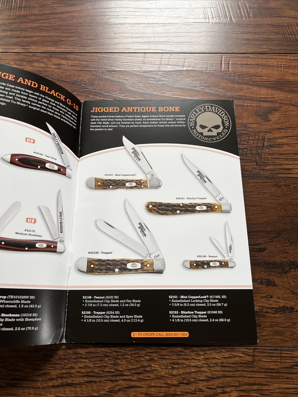 Get your hands on this limited edition Case XX 2017 Spring Harley Davidson Collection Dealer Catalog. Featuring a colorful and vibrant design, this catalog is a must-have for knife enthusiasts and Harley Davidson fans alike. Made in the United States with original and authentic materials, this collectible piece is a great addition to any collection. With a focus on knives and blades, this catalog showcases the best of the Case brand. The multi-colored design and detailed images make it easy to find the perfect addition to your collection. Don't miss out on this one-of-a-kind catalog, add it to your collection today!