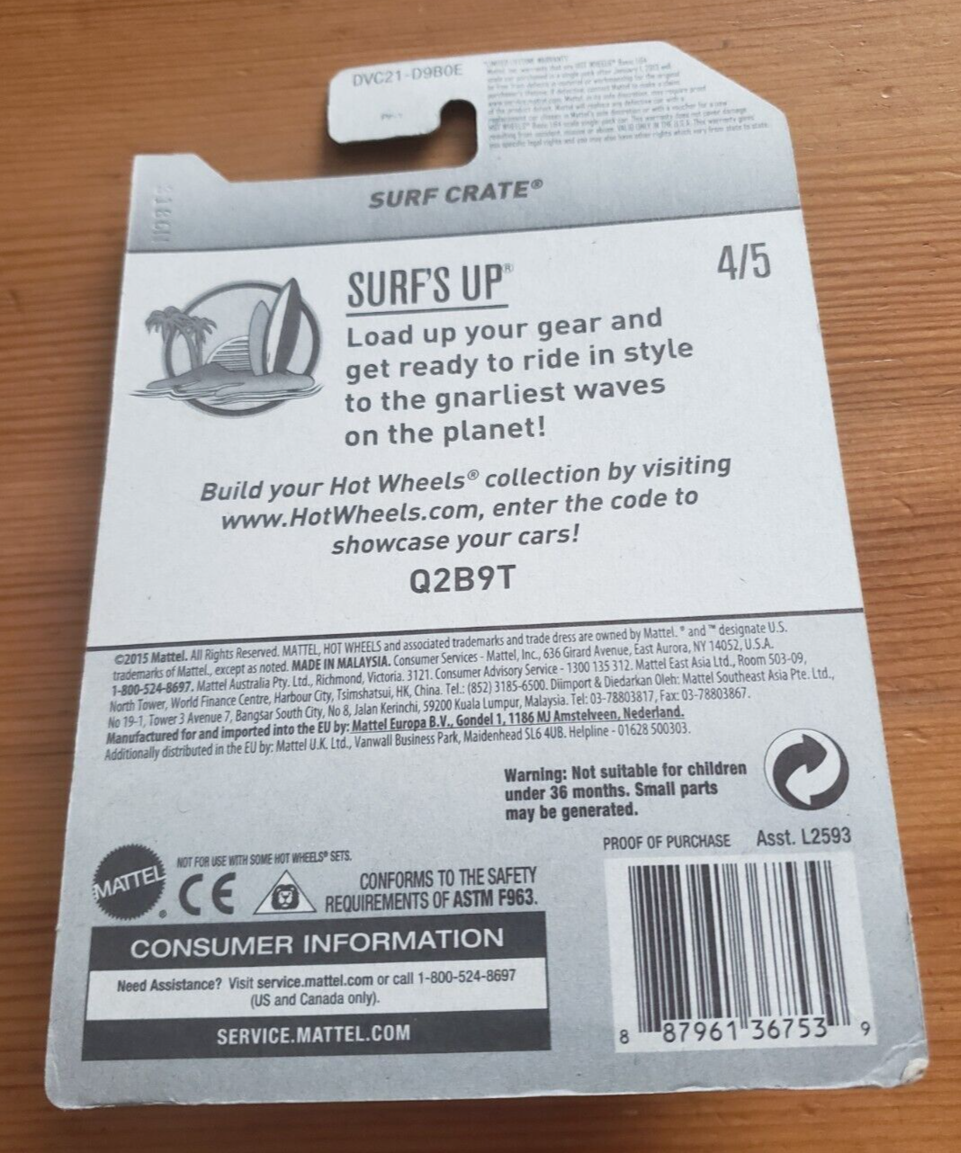 2017 Hot Wheels - Surf Crate - #4/5 - Surf's Up - #100/365 - DVC21 Sent in secure Bubble Mailer and Tracking number. Please message me with any questions or concerns. Thanks for looking!