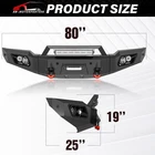 Rear /Front Bumper W/ Sensor Holes & D-rings For 2017-2020 F150 F-150 SVT Raptor Please pay attention to the product options you select: If you choose Front & Rear Bumper,You can get 1 × Front Bumper, 1 × Rear Bumper and Mounting Hardware; If you choose Only Front Bumper,You can get 1 × Front Bumper and Mounting Hardware; If you choose Only Rear Bumper,You can get 1 × Rear Bumper and Mounting Hardware; Suitable Models : Compatible with 2017-2020 F150 F-150 SVT Raptor Package Includes : ① Front & Rear Bumper option : 1 x Front Bumper, 1 x Rear Bumper, 7 x LED Lights, 1 x Winch Plate , Skid Plate, 1 x License Plate Bracket , 4 x D-rings, Hitch Receiver, L icense Plate Lights, 2 x manual, screw fittings ② Front Bumper optio n : 1 x Front Bumper, 2 x D-rings, Winch Plate, 5 x LED Lights, Skid Plate, License Plate Frame, 1 x manual, screw fittings ③ Rear Bumper opti on : 1 x Rear Bumper, 2 x D-rings, 2 x LED Lights, L icense Plate Lights, Hitch Receiver, 1 x manual, screw fittings Product Information : Package Dimensions : 75.98"D x 26.97"W x 20.67"H Installation mode: Bolt-On With Sensor Holes: Yes ( NOT fit for original sensor ) Steel thickness: 3mm Placement on Vehicle: Front/Rear Item Weight: Front Bumper: 116 Pounds; Rear Bumper: 81 Pounds Material: Carbon Steel Color: Black (hand measurements may have an error of 2-3 mm/0.078-0.118 in) Feature : Front bumper : ① The front bumper features dual, securely welded D-ring shackle mounts, both internally and externally reinforced. It comes with a 12,000 lbs winch plate, a skid plate, two 4.75-ton D-rings, a license plate bracket, pre-drilled holes for sensors, a 120W LED spotlight, and four 18W LED spotlights; ② Strong front bumper made of high-strength steel with a two-stage textured black powder coating for durability and a sleek appearance. Resists rust, ensuring lasting performance and aesthetics even with coating damage; ③ The package includes mounting hardware and installation instructions for an easy bolt-on setup, avoiding the need for drilling; ④ Durability, Waterproof, Rust-proof; Rear Bumper : ① Our rear bumper offers a range of features, such as a sturdy stainless steel skid-resistant plate, two 4.75-ton D-rings, sensor holes, 2" Standard Hitch Receiver, two high-powered 18W LED spotlights, and license plate light. It is crafted with pre-drilled holes for the license plate and trailer plug; ② Constructed from robust steel, our rear bumper offers outstanding durability and strength. The textured black powder coating enhances its appearance while providing additional protection against rust, ensuring long-lasting performance. Even with minor scratches or damage to the coating, it maintains its high-quality resilience; ③ Our rear bumper features a simple bolt-on design for easy installation without modifications. For safety, professional installation is advised; ④ Durability, Waterproof, Rust-proof; Warranty Period :2 year Standard Shipping (FedEx Ground or FedEx Home Delivery) Will usually ship within 3 business days of receiving cleared payment Please pay attention to the product options you select: If you choose Front & Rear Bumper,You can get 1 × Front Bumper, 1 × Rear Bumper and Mounting Hardware; If you choose Only Front Bumper,You can get 1 × Front Bumper and Mounting Hardware; If you choose Only Rear Bumper,You can get 1 × Rear Bumper and Mounting Hardware; Suitable Models : Compatible with 2017-2020 F150 F-150 SVT Raptor Package Includes : ① Front & Rear Bumper option : 1 x Front Bumper, 1 x Rear Bumper, 7 x LED Lights, 1 x Winch Plate , Skid Plate, 1 x License Plate Bracket , 4 x D-rings, Hitch Receiver, L icense Plate Lights, 2 x manual, screw fittings ② Front Bumper optio n : 1 x Front Bumper, 2 x D-rings, Winch Plate, 5 x LED Lights, Skid Plate, License Plate Frame, 1 x manual, screw fittings ③ Rear Bumper opti on : 1 x Rear Bumper, 2 x D-rings, 2 x LED Lights, L icense Plate Lights, Hitch Receiver, 1 x manual, screw fittings Product Information : Package Dimensions : 75.98"D x 26.97"W x 20.67"H Installation mode: Bolt-On With Sensor Holes: Yes ( NOT fit for original sensor ) Steel thickness: 3mm Placement on Vehicle: Front/Rear Item Weight: Front Bumper: 116 Pounds; Rear Bumper: 81 Pounds Material: Carbon Steel Color: Black (hand measurements may have an error of 2-3 mm/0.078-0.118 in) Feature : Front bumper : ① The front bumper features dual, securely welded D-ring shackle mounts, both internally and externally reinforced. It comes with a 12,000 lbs winch plate, a skid plate, two 4.75-ton D-rings, a license plate bracket, pre-drilled holes for sensors, a 120W LED spotlight, and four 18W LED spotlights; ② Strong front bumper made of high-strength steel with a two-stage textured black powder coating for durability and a sleek appearance. Resists rust, ensuring lasting performance and aesthetics even with coating damage; ③ The package includes mounting hardware and installation instructions for an easy bolt-on setup, avoiding the need for drilling; ④ Durability, Waterproof, Rust-proof; Rear Bumper : ① Our rear bumper offers a range of features, such as a sturdy stainless steel skid-resistant plate, two 4.75-ton D-rings, sensor holes, 2" Standard Hitch Receiver, two high-powered 18W LED spotlights, and license plate light. It is crafted with pre-drilled holes for the license plate and trailer plug; ② Constructed from robust steel, our rear bumper offers outstanding durability and strength. The textured black powder coating enhances its appearance while providing additional protection against rust, ensuring long-lasting performance. Even with minor scratches or damage to the coating, it maintains its high-quality resilience; ③ Our rear bumper features a simple bolt-on design for easy installation without modifications. For safety, professional installation is advised; ④ Durability, Waterproof, Rust-proof; Warranty Period :2 year