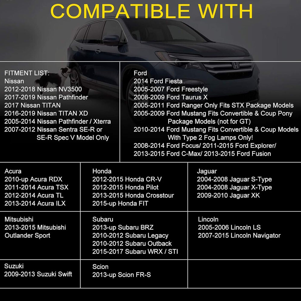 Fitment: For 2015-2018 Jeep Renegade For Honda Pilot 2012-2014 2015 Installation: Clear Lens Halogen Bulbs H16,19W,12V Bulbs Type Front,Left,Right Placement on Vehicle Fitment Type: Direct Replacement OEM Number: 33901-TY0-305, 33901TY0305 Reference OE/OEM Number: 33900STKA11 4F9Z15200AA 26154-EA500 84501AJ00A Part number :68202187AA PartsLink #: CH2592152 Sold as a pair: Driver and passenger side Features: * 100% new factory original packaging. *Made of high-quality OE similar materials, it can withstand harsh road wear and the test of time. *Placement on Vehicle:Front,Right *A great substitute/accessory for your vehicle without modification. *Lightweight design. *DOT/SAE approved for street legal.