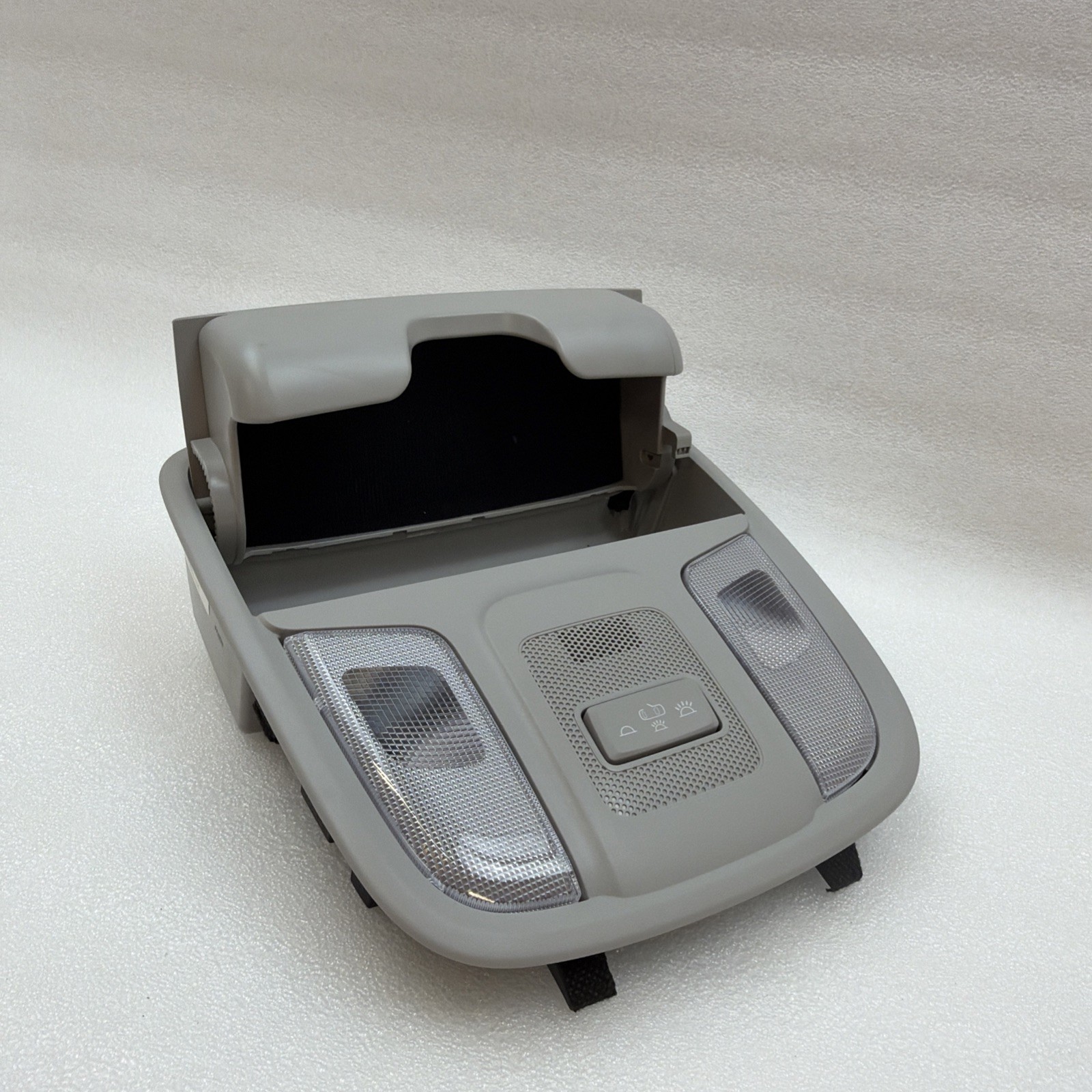 The 2017-2022 Kia Niro Gray Overhead Console Dome Lamp Light OEM 92800-G5000HGC is a genuine Kia replacement part designed specifically for the Niro model. This dome light assembly includes two bulbs and features a sunglass holder for added convenience. The gray housing color and bulb lighting technology ensure a perfect fit and proper functionality. With its OE/OEM part number and manufacturer part number, this overhead console dome lamp light is a reliable and high-quality choice for your vehicle. Kia Niro 2019 ex 17k Millage