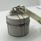 The product is a rare 2018 PANDORA ornament or jewelry gift box, perfect for Christmas. This small, white ornament features a boxing theme, making it a unique addition to any holiday decor. The set includes one ornament with ribbon suitable for recipients such as women, mom, and girls. With a brand like PANDORA and a year of manufacture in 2018, this collectible item is sure to be a special surprise for any ornament lover's collection.