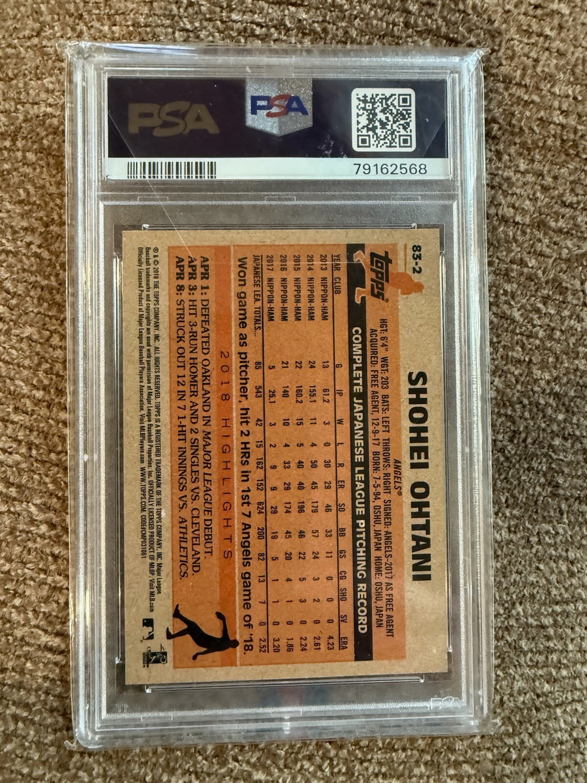 2018 TOPPS UPDATE SHONEI OHTANI 1983 TOPPS BASEBALL CARD GEM MINT #10. Condition is Graded. Shipped with USPS Ground Advantage.