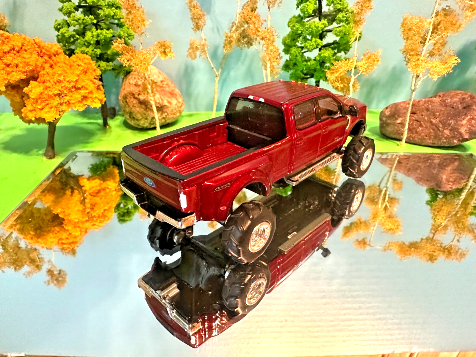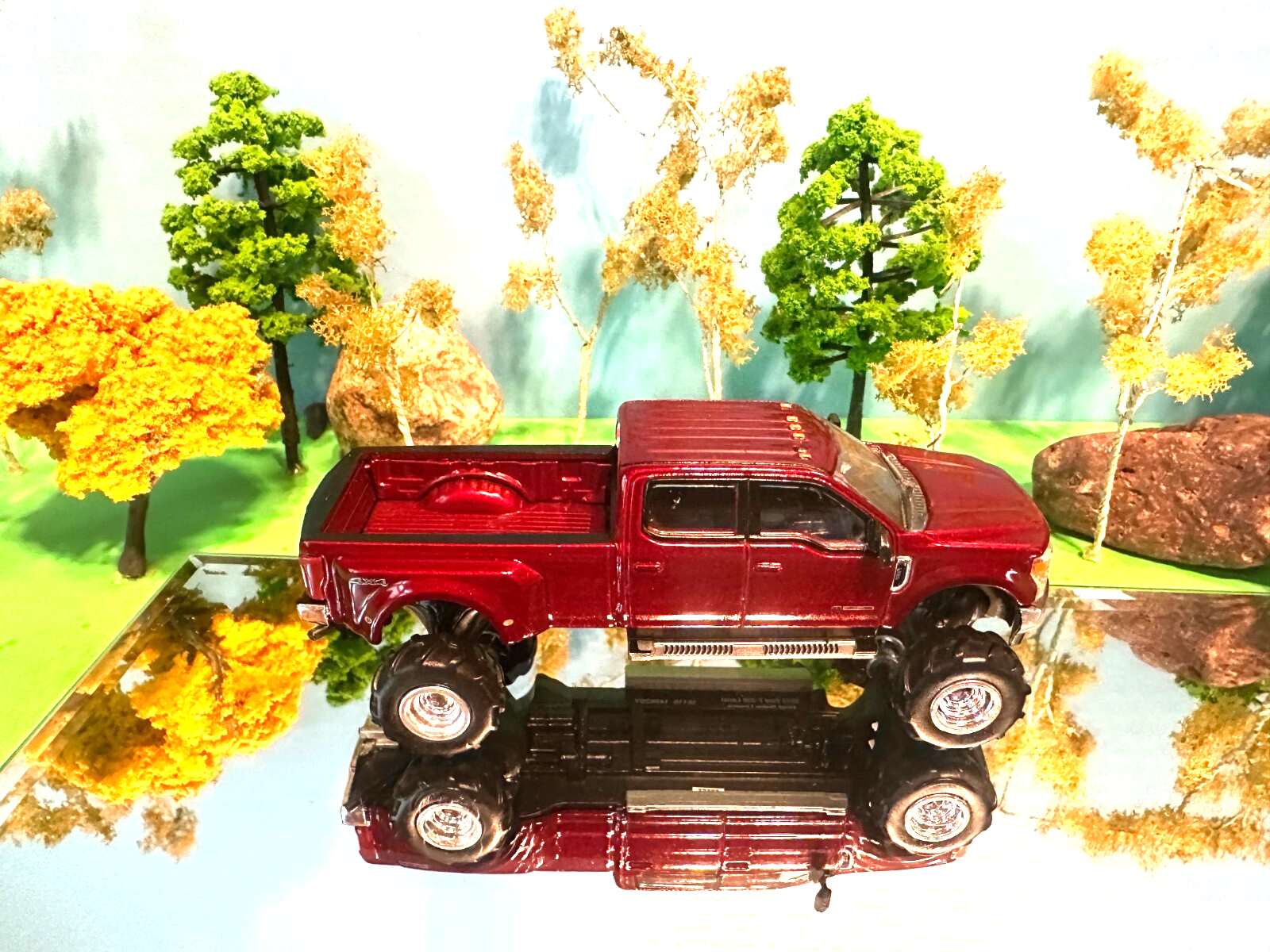 Ford F350 2019 Lariat Custom G5 Lift Kit Greenlight Swamp Mud Tires Chrome Rims 2018 Ford F-350 Lariat Limited Edition Greenlight Cranberry Red NEW WARNING: NOTE THAT ALL TRUCKS & CARS WE SELL HAVE SMALL PARTS AND POSE A CHOKING HAZARD. THE SALE OF ALL OUR ITEMS ARE INTENDED FOR ADULT COLLECTORS ONLY.