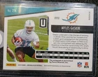 This is a rare 2019 Panini Unparalleled sports trading card featuring Myles Gaskin of the Miami Dolphins. The card is numbered 274 and is an autographed rookie card (RC) with a limited edition of 22 out of 25. It is a great addition to any collection for fans of the NFL or baseball. The card is in excellent shape and has been well-preserved since its manufacture by Panini.
