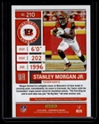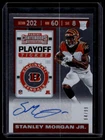 This is a nice example of a 2019 Panini Contenders #210 Stanley Morgan Jr. Playoff Ticket.Other important information about this card: SN,RC,AUIn 2019 Stanley Morgan Jr. played for the Cincinnati Bengals.Please check out our other listings for more great cards. Shipping can be combined! First card is $1.25 - each additional card is $0.50. Up to 2 cards will be toploaded, additional cards won/paid for will be in a penny sleeve. Thank you for your business!