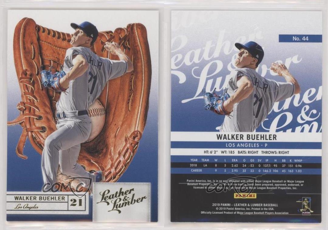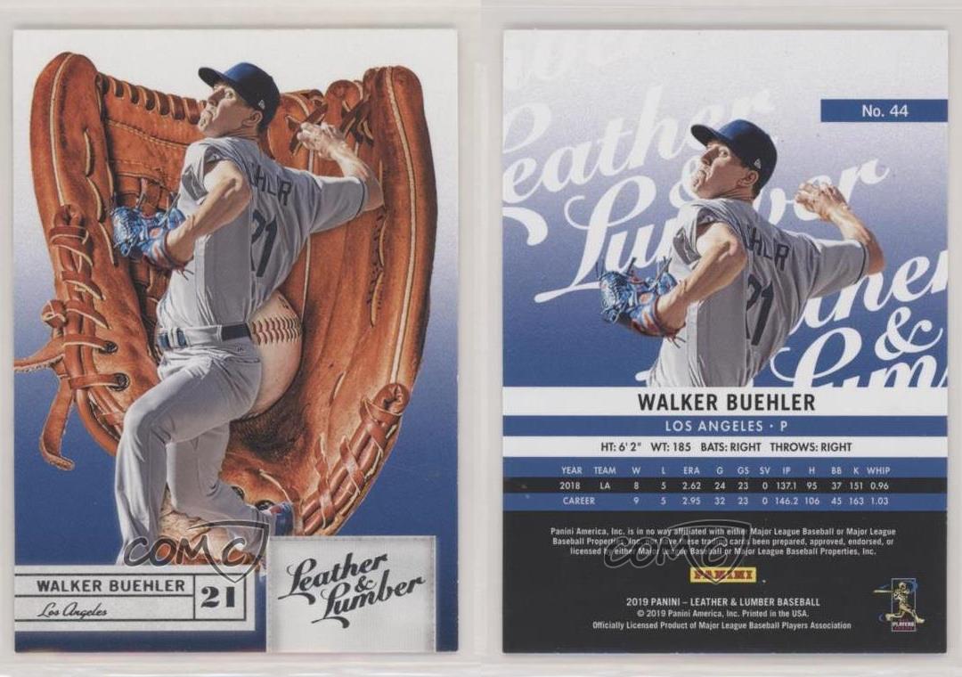 Card Number: 44 Team: Los Angeles Dodgers Series: Panini Leather & Lumber League: Major League Baseball (MLB) brand: Panini Parallel/Variety: [Base] Manufacturer: Panini Subset: Gloves Season: 2019 Sport: Baseball Additional Description: Gloves - Walker Buehler Set: 2019 Panini Leather & Lumber Features: Base Set Player/Athlete: Walker Buehler