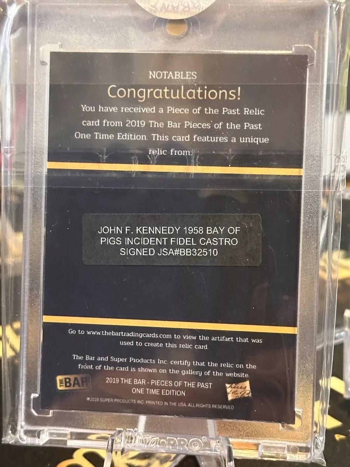 2019 The Bar Pieces of Past One Time Notables Relic 1/1 John F Kennedy/Castro ✍️ 2019 The Bar Pieces of Past One Time Notables Relic 1/1 John F Kennedy/Castro ✍️