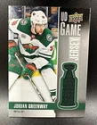 Capture a piece of hockey history with the 2019-20 Upper Deck Jordan Greenway UD Game Used Jersey card #GJ-JO. This collectible features authentic memorabilia from the Minnesota Wild and Buffalo Sabres, celebrating Jordan Greenway's impact on the ice. As part of the esteemed 2019-20 Upper Deck set, this card is a must-have for enthusiasts and collectors alike. With its striking design, this card showcases the excitement of the National Hockey League (NHL) without the presence of an autograph, keeping the focus on the player's legacy and the sport's adrenaline. Whether you're a fan of the Wild, the Sabres, or just a connoisseur of sports trading cards, this item brings a piece of the action into your collection.