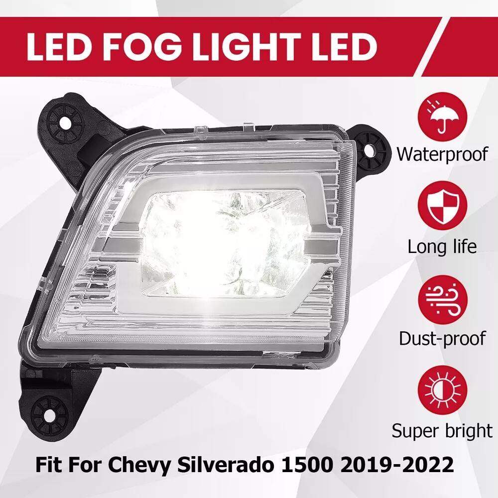 These LED fog lights are a perfect upgrade for the Silverado 1500! Super bright, easy to install with the included harness, and they look sleek. The fit is spot-on for 2019-2022 models, and the 1-year warranty gives peace of mind. No wiring issues—just plug and play. Highly recommend for better visibility and a modern touch!