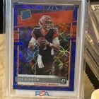 Embrace the excitement of adding the 2020 Donruss Optic Rated Rookie Blue Scope Prizm #151 Joe Burrow RC to your collection. This sought-after card has been meticulously evaluated by the Professional Sports Authenticator (PSA) and has earned a commendable grade of 9. Its pristine presentation is a testament to the high-caliber handling it has received, ensuring it meets the expectations of discerning collectors. This card is a must-have for enthusiasts of sports memorabilia, featuring the coveted Blue Scope finish that enhances its visual appeal. As a graded item, it represents a secure investment for collectors and fans of the promising talent, Joe Burrow. Whether for display or as a treasured asset, this trading card is poised to be a standout in any collection.