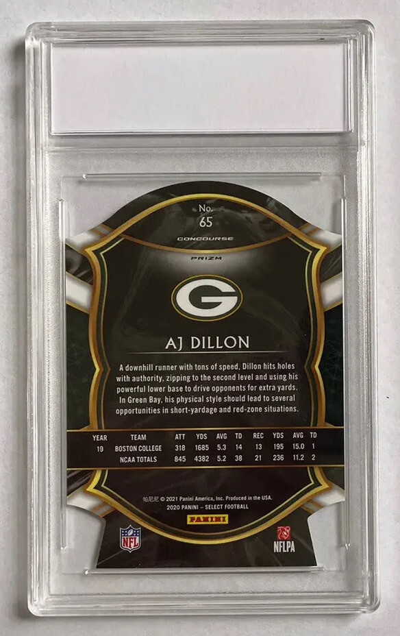 2020 Panini Prizm Concourse Neon Green Die Cut #65 AJ Dillon BMG Grade 10 Gem Mint Rare Prizm card. Shipped in a bubble mailer Actual photos of card that you will receive Additional photos available upon request