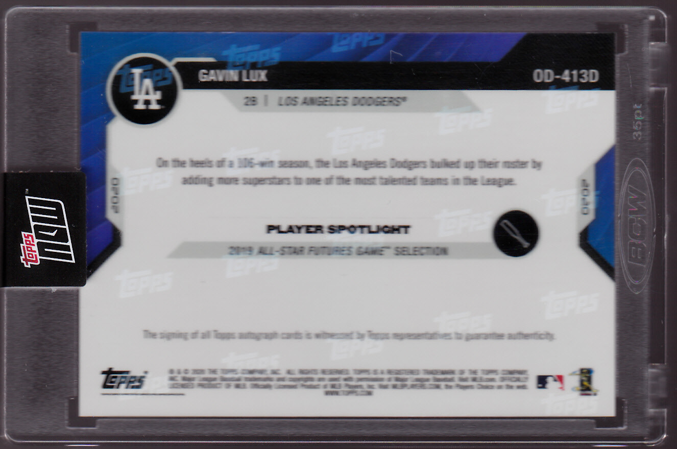 2020 Topps Now Road to Opening Day - Gavin Lux #OD-413D Red Autographs /10 (AU, RC)
