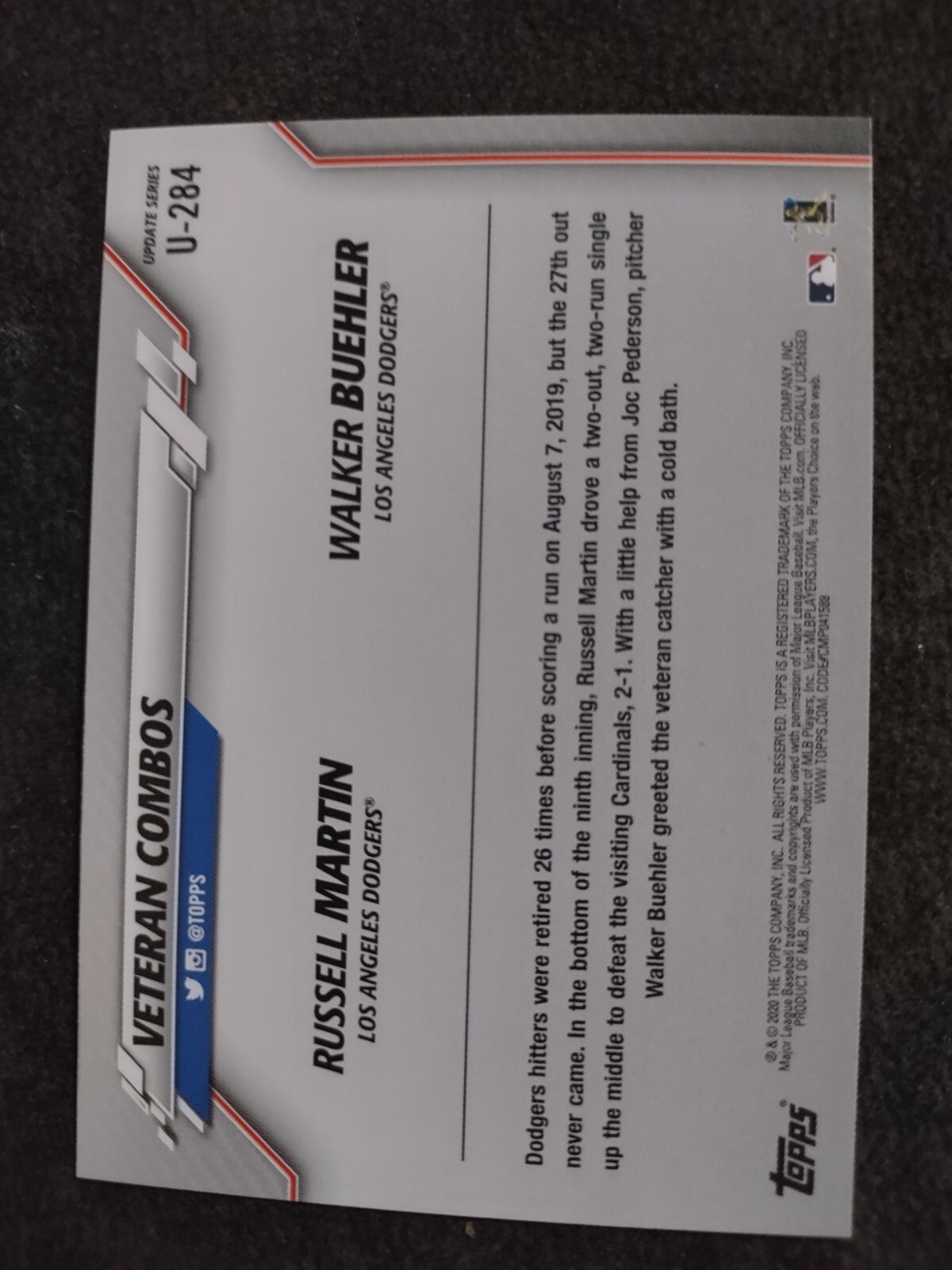 2020 Topps Update Series Veteran Combos #U-284 Los Angeles Dodgers Baseball Card