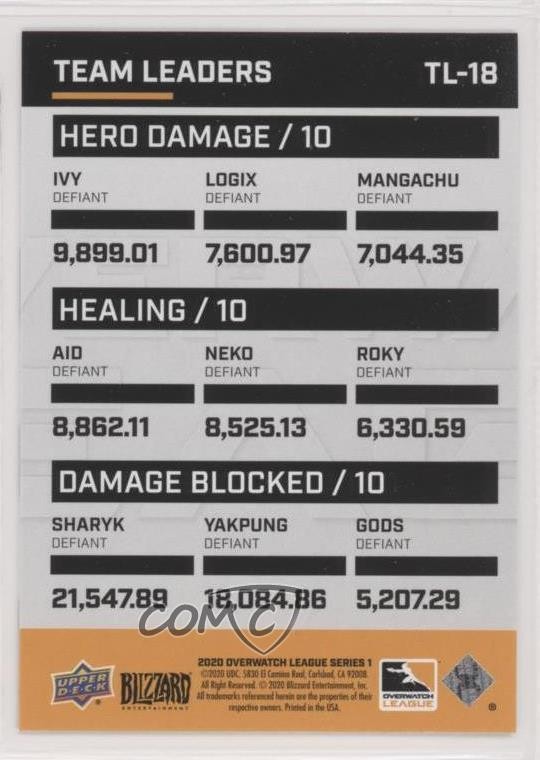 This Overwatch League Team Leaders card is a must-have for fans! Featuring Toronto Defiant stars Ivy, Aid, and Sharyk, it’s a great addition to any collection. The artwork is sharp, the colors pop, and the card feels premium. If you love Overwatch or collect esports memorabilia, don’t miss this one—it’s a standout piece that captures the excitement of the league. Perfect for trading or displaying!