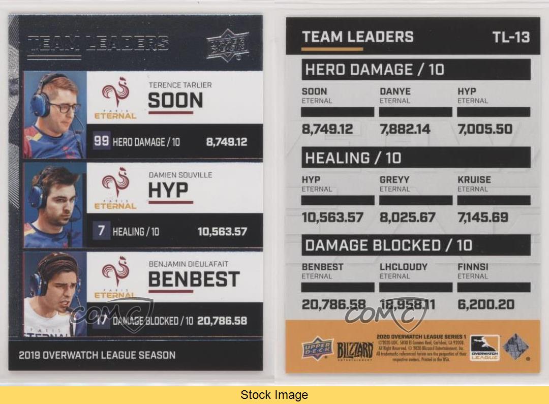 2020 Upper Deck Overwatch League - Team Leaders #TL-13 SoOn, HyP, BenBest - MiscSports Card - Featuring the Paris Eternal - Featuring SoOn , HyP and BenBest Search for more: 2020 Upper Deck Overwatch League Search for more: 2020 Upper Deck Overwatch League - Team Leaders View all of our Listings Auctions Buy It Now About Us Located in the beautiful Pacific Northwest, COMC (Check Out My Cards) is the world's largest consignment service for trading card singles. More than 10,000 people have used our consignment service to list over 50 million trading cards. Find out how we can help you consign your items on eBay by contacting us through eBay messaging. COMC -- "The Safe & Easy Way to Buy & Sell" Representative Image - Select Specific Item above to see image of actual item Representative Image - Select Specific Item above to see image of actual item Raw Condition for Modern Cards Unless otherwise noted, raw modern cards are listed in Near Mint-Mint condition or better. A NM-MT card appears to be Mint at first glance, but upon closer inspection, may exhibit some of the following: minor print defects (e.g. roller marks, print line, dimple), minor scratches, slight edge wear, and slight corner wear. Centering is clearly visible in the images provided and does not factor into our condition assessment. Raw Condition for Vintage Cards Unless otherwise noted, raw vintage cards are listed in Excellent condition or better. An EX card may exhibit some of the following: minor rounding of corners, surface wear, print defects, light scratches, and slight edge wear/chipping. Centering is clearly visible in the images provided and does not factor into our condition assessment. Domestic Shipping Combined shipping for multiple items is available. To receive combined shipping, please ensure all desired items are in your eBay shopping cart before proceeding to checkout. eBay limits orders to 40 items per order. We automatically combine multiple orders placed on the same day. If you place multiple orders on the same day, please contact us to request a refund of applicable shipping costs. Signature confirmation may be required on invoices over $400. All cards are protected and shipped securely. International Shipping COMC offers eBay's International Shipping (EIS) for international orders under $2,500* (see country exceptions below). All duties and import fees are paid at checkout; in the rare event that there are additional import fees upon delivery, these are borne by the buyer. EIS packages route through a shipping hub in Erlanger, KY before shipping to their final destination. Please note that EIS does not allow for combined shipments. The shipping rates are determined by eBay and cannot be adjusted. *Maximum sale price exceptions: Colombia, Kuwait ($2,000); Taiwan ($1,539); Chile, Costa Rica, Guatemala, Honduras, Trinidad and Tobago ($1,000); Antigua and Barbuda, Aruba, Belize, Dominica, Grenada, Philippines, Saint Kitts and Nevis, Saint Lucia, Montserrat, Turks and Caicos Islands ($500); Dominican Republic, El Salvador ($200). Please request a shipping quote through eBay messaging for orders that exceed the maximum sale price supported by eBay's International Shipping. You will be responsible for all duties and import fees for international orders shipped outside the EIS. All cards are protected and shipped securely. Payment COMC does not accept offers on our cards through our eBay storefront. COMC utilizes eBay’s managed payments system. If you are experiencing difficulties making a payment, please contact eBay for assistance. Return Policy Returns are only accepted on the rare occasion the item is not as described. If you are making a return, please initiate the return process through eBay so a mailing label can be provided for you. Prior to listing, our expert team carefully assessed this item to represent it accurately. Please review the description and high-definition images prior to purchasing to ensure this item meets your satisfaction. We welcome you to contact us if you have further questions about this item. Trust and Integrity COMC carefully assesses each item consigned to us to prevent fraudulent items from entering the marketplace. If you believe an item offered on COMC may be fraudulent, please contact us with details so we can investigate the issue. Items we determine are outside our supported items policy may be removed. Last Modified: 7/10/2025 12:51:22 PM PDT